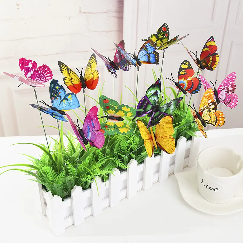 New artificial butterfly crafts, double-layer waterproof, with insertable rods, artificial butterflies for outdoor decoration, pack of 10