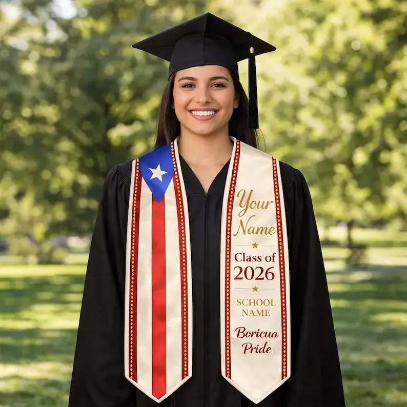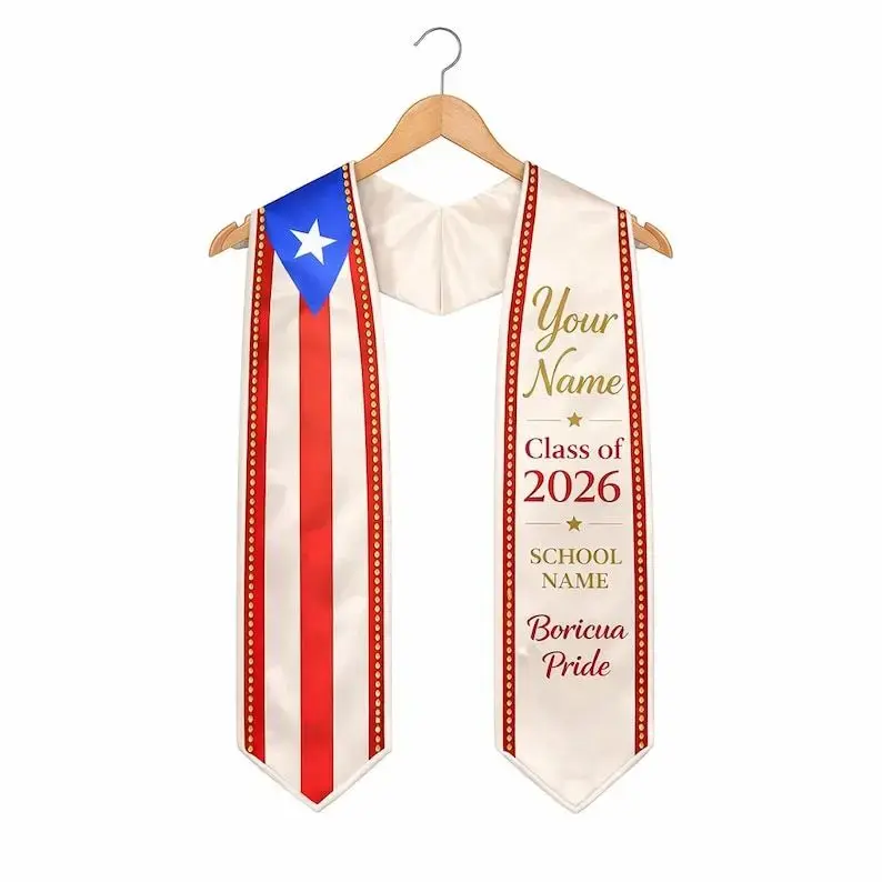 Custom Puerto Rican Graduation Stole 2026, Puerto Rican Flag Sash, Boricua Grad Stole, Personalized Name School Stole, Latino Grad Gift Graduation Stole