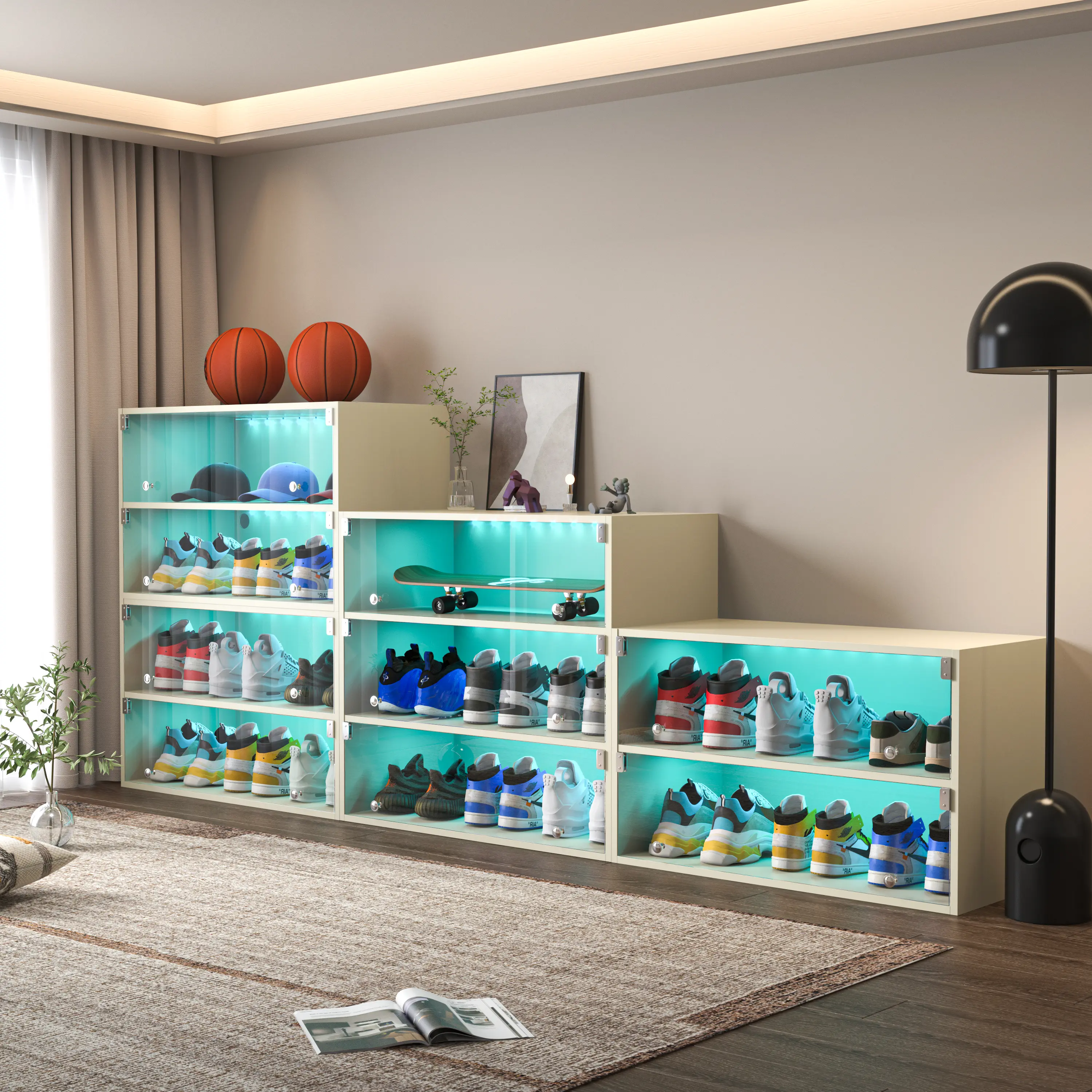 Made with a wooden frame and precisely cut 1/4-inch thick glass doors, sliding open and closed to prevent dust and dirt.Display your beloved sneakers like exhibits, enhancing the quality of your collection showcase.
