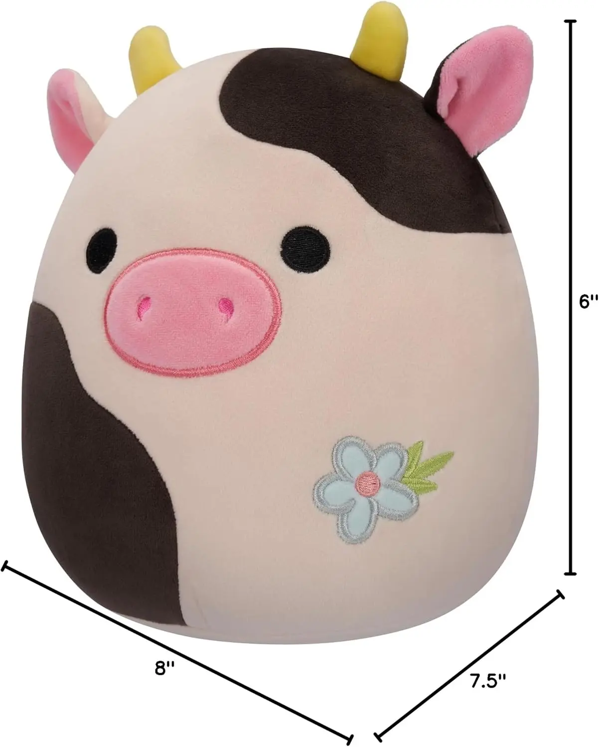 Squishmallows Original 8-Inch Connor Cow with Blue Flower Embroidery - Official Jazwares Plush