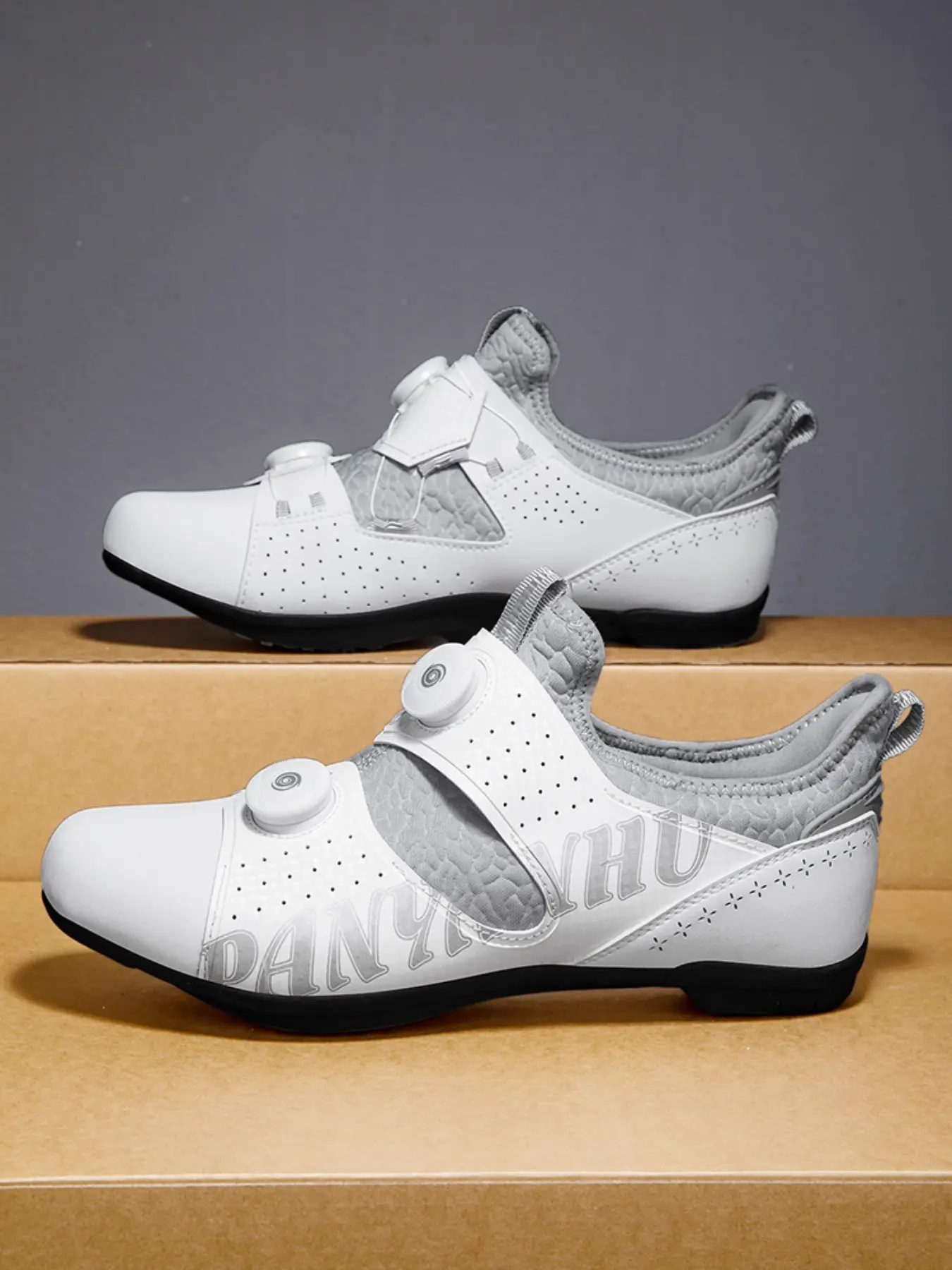 Unisex Cycling Shoes, Indoor Road Bike Shoes, Sporty PU Leather, Wide Fit, Colorblock Design, All Seasons, Professional Style