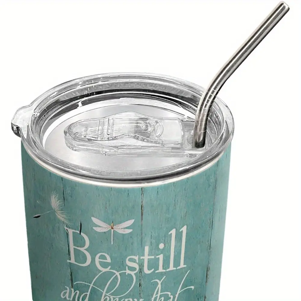 20oz Dandelion Dragonfly Faith Tumbler 20oz, Know That I Am God, Religious, Christian Gifts, Coffee Insulated Bottle for Women, Stainless Steel Double Wall Vacuum Insulated Coffee Mug, Travel Cup with Lid
