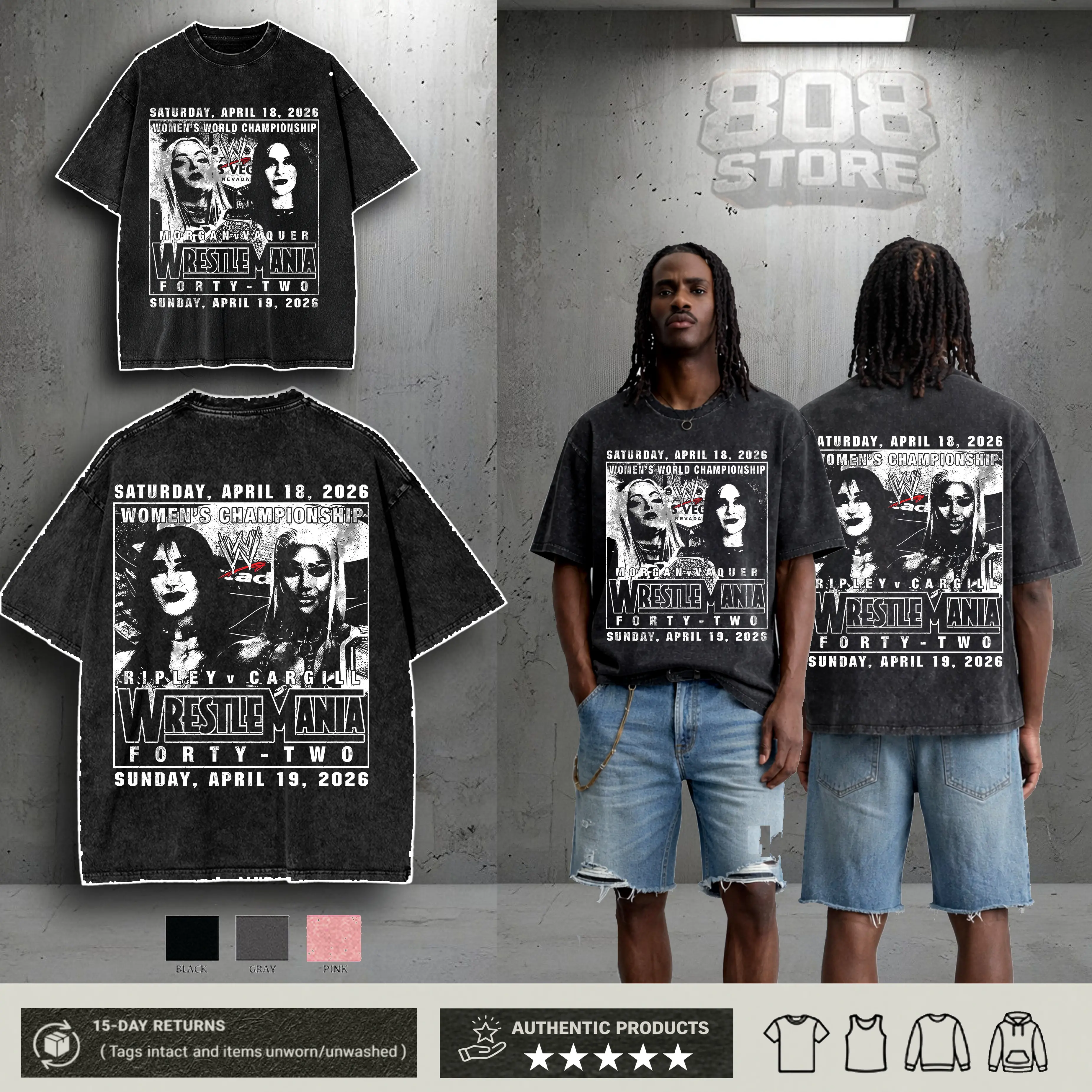 5. WRESTLEMANIA 42 LIV MORGAN STEPHANIE VAQUER RHEA RIPLEY JADE CARGILL Washed T-Shirt Wrestling Shirt WWE Fans WWE Tee Menswear Cotton Crewneck American Made Acid Washed 100% Cotton