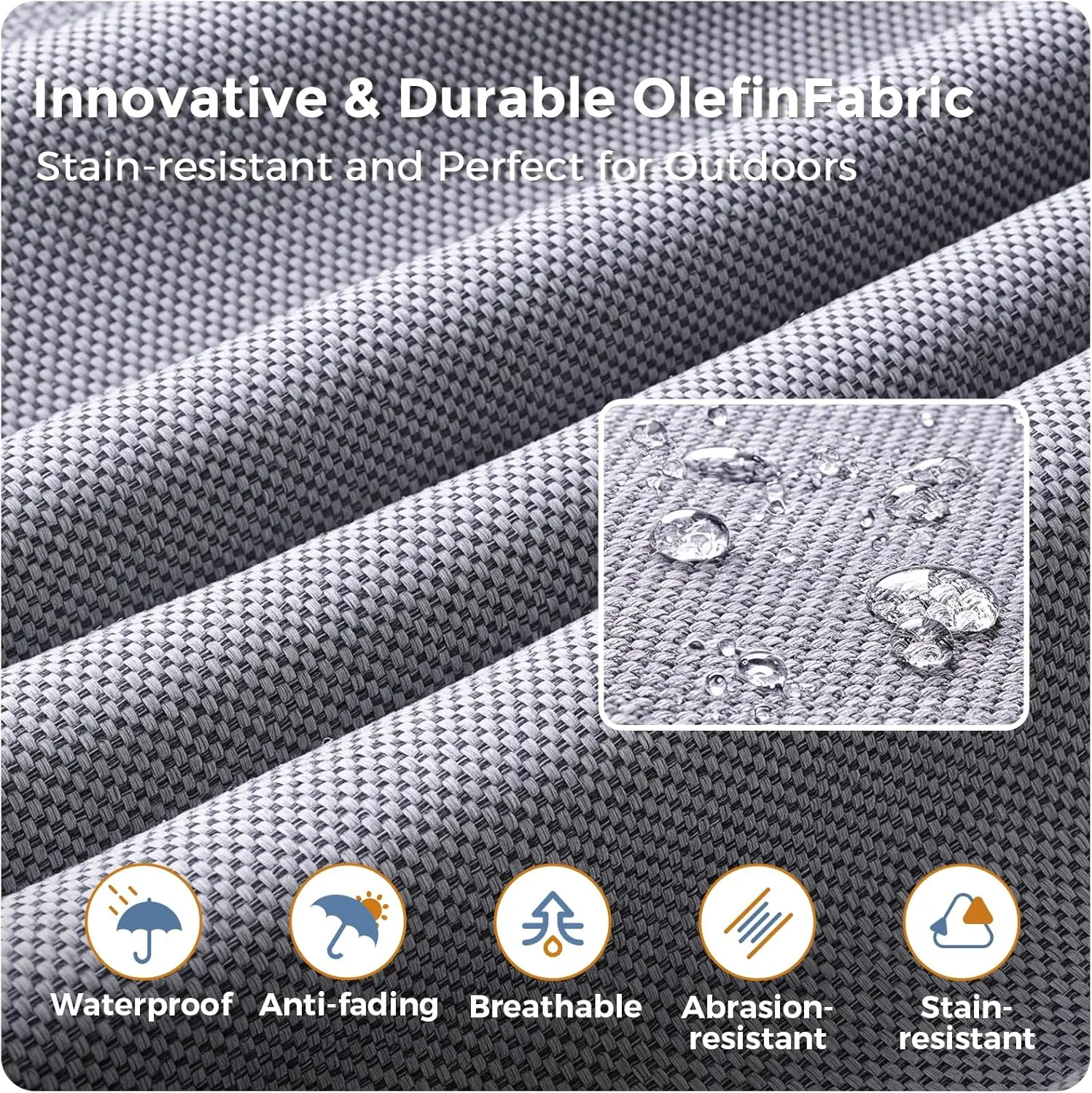 ·Weather-Resistant Fabric: Featuring 200g eco-friendly olefin covers, the cushions are waterproof, stain-resistant, and easy to clean. They also offer UV protection, ensuring they remain vibrant and cool, even after prolonged sun exposure.