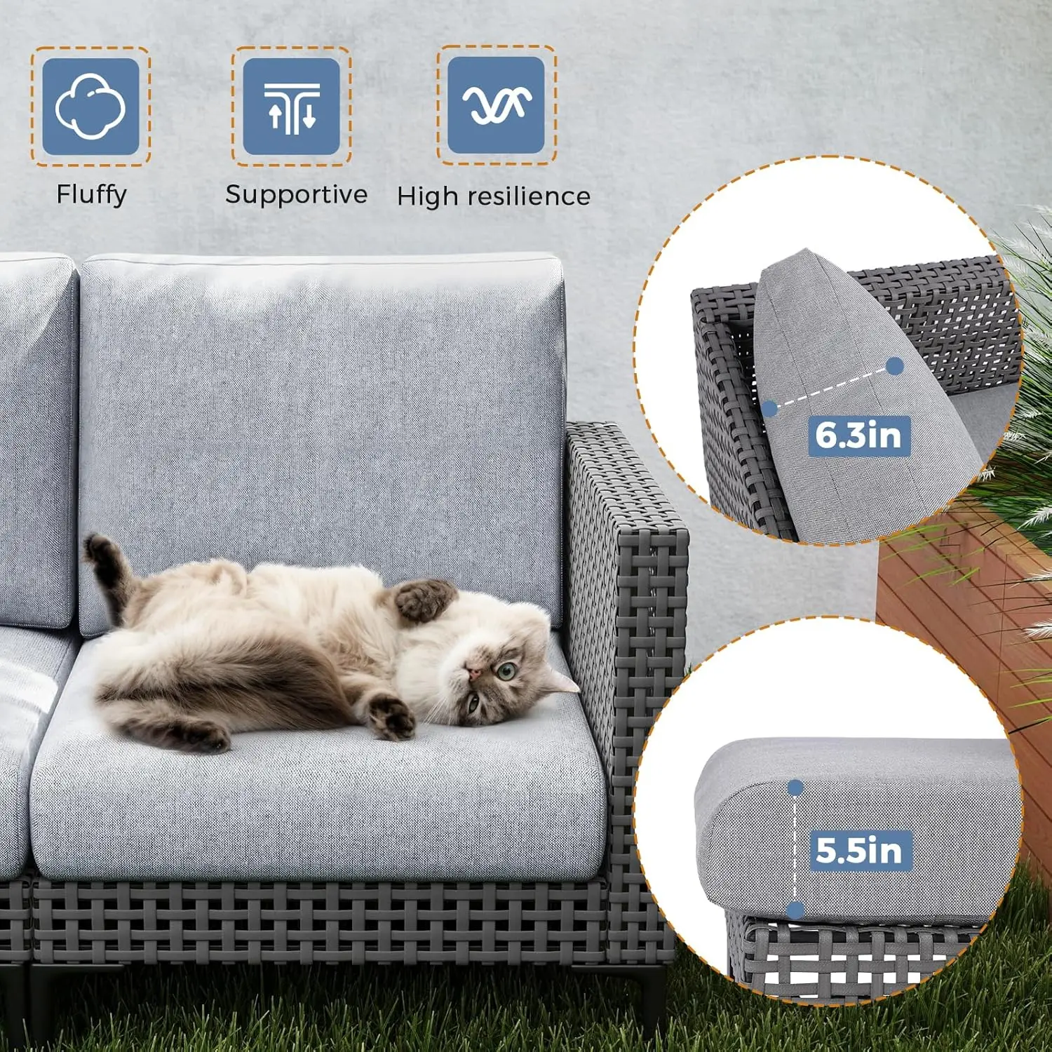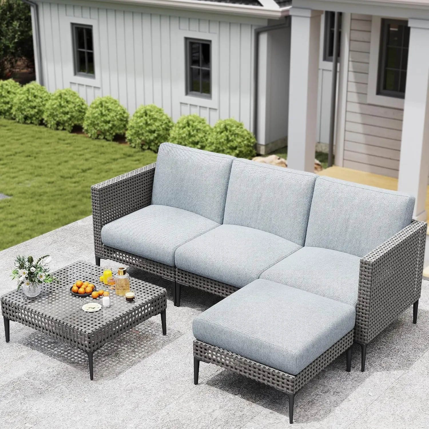 ·Sturdy Metal Frame: The electrophoresis and spray-coated Metal frame ensures a robust structure that resists rust, making this outdoor patio sofa set a long-lasting addition to any patio or balcony.
