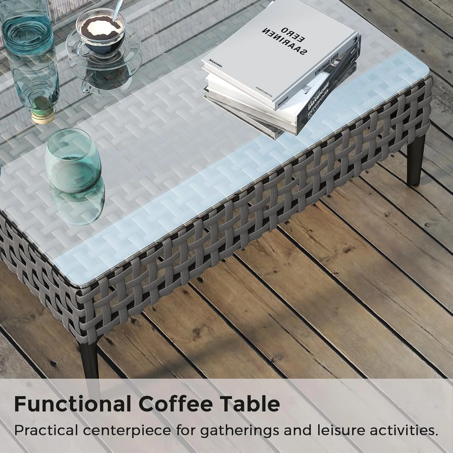 ·Stylish PE Rattan Design: This outdoor patio sofa set features a chic PE rattan structure, delivering both durability and an elegant aesthetic. Its woven design effortlessly enhances any garden or balcony space with a modern touch.