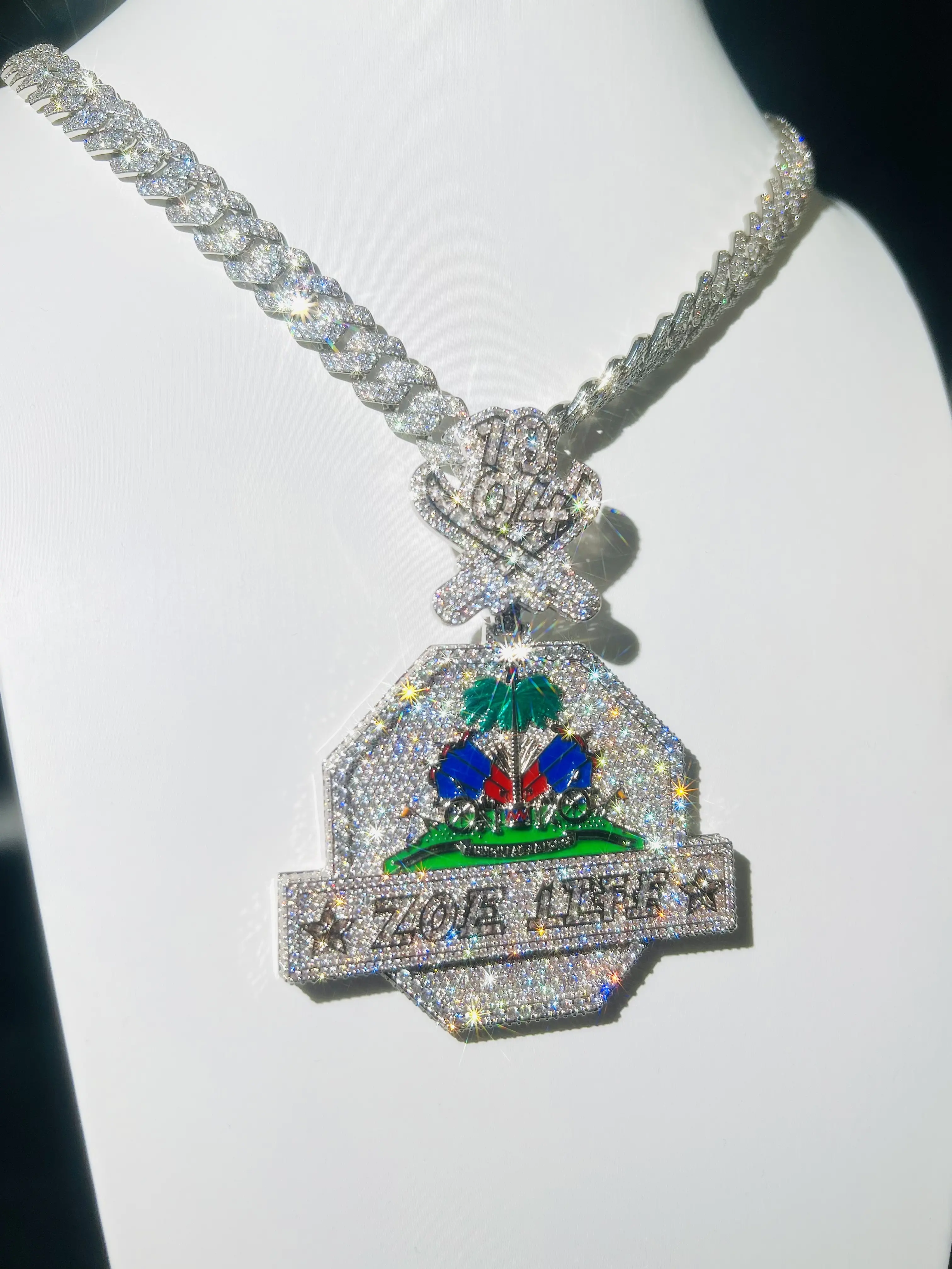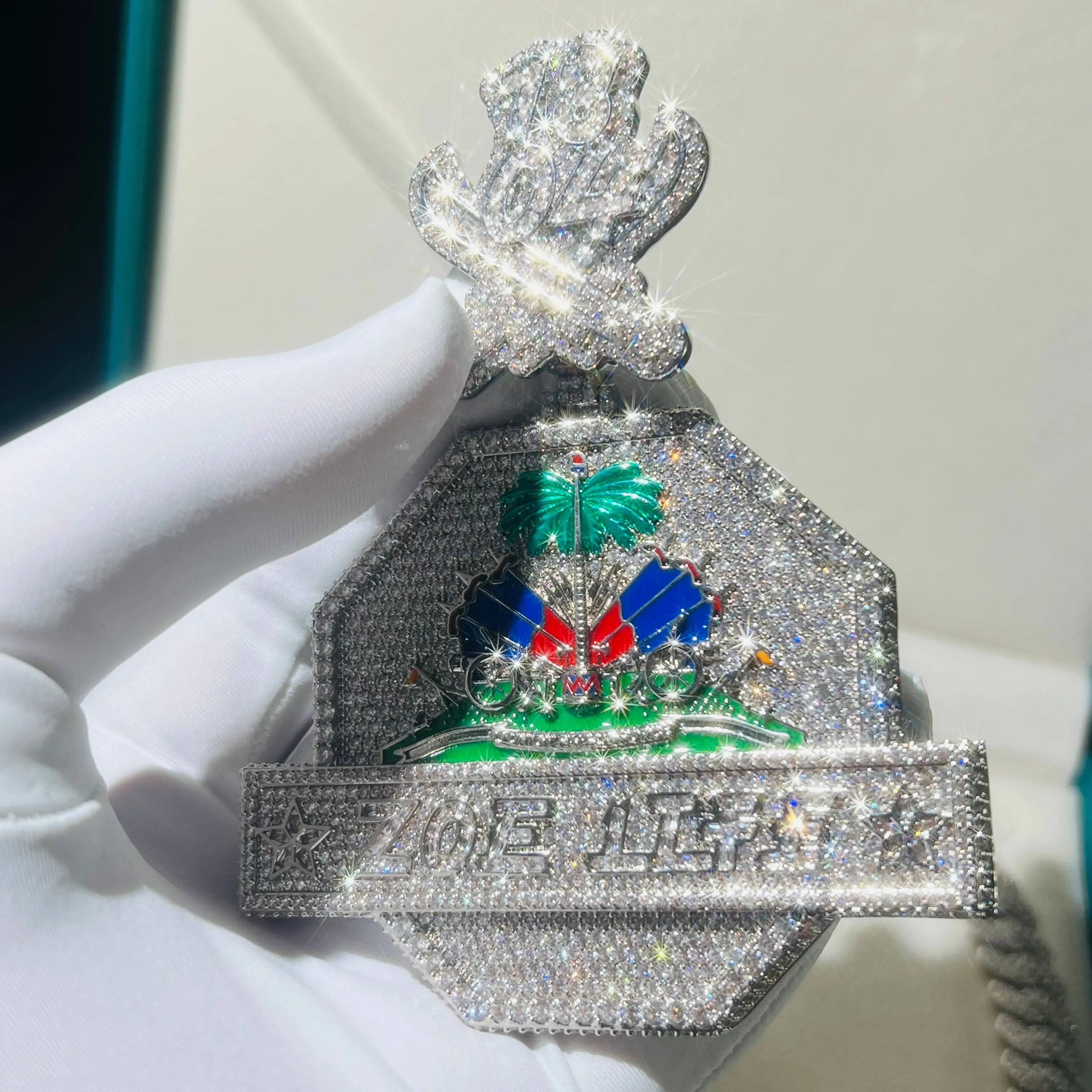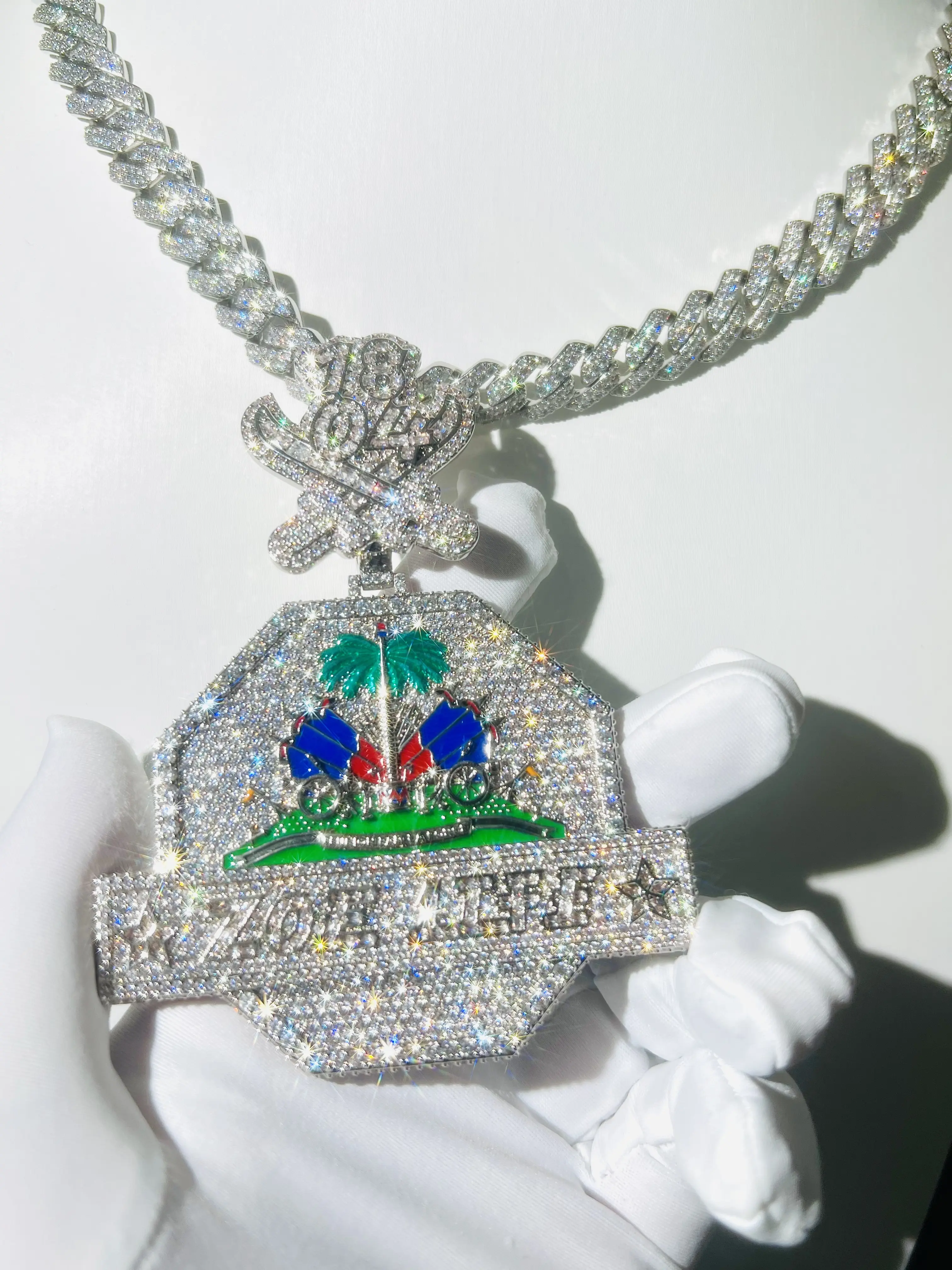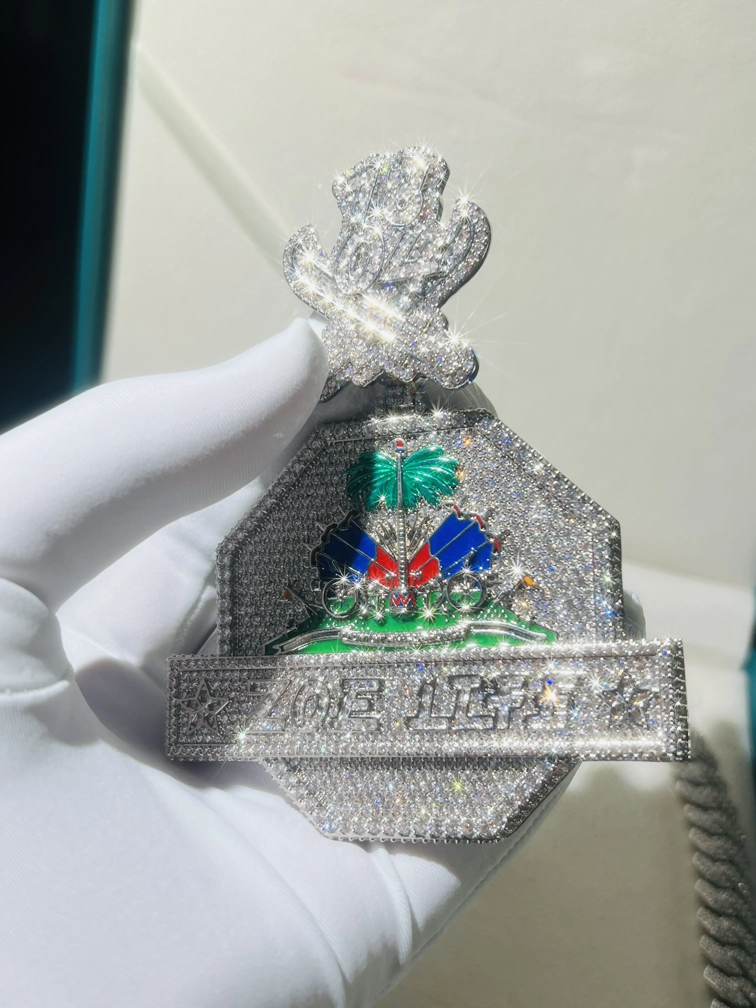 Custom jewelry coconut tree pendant, luxury high-end icy pendant, chilled cartoon medal, men's hip-hop real gold-plated VVS, fashionable trendy hip-hop style jewelry ...