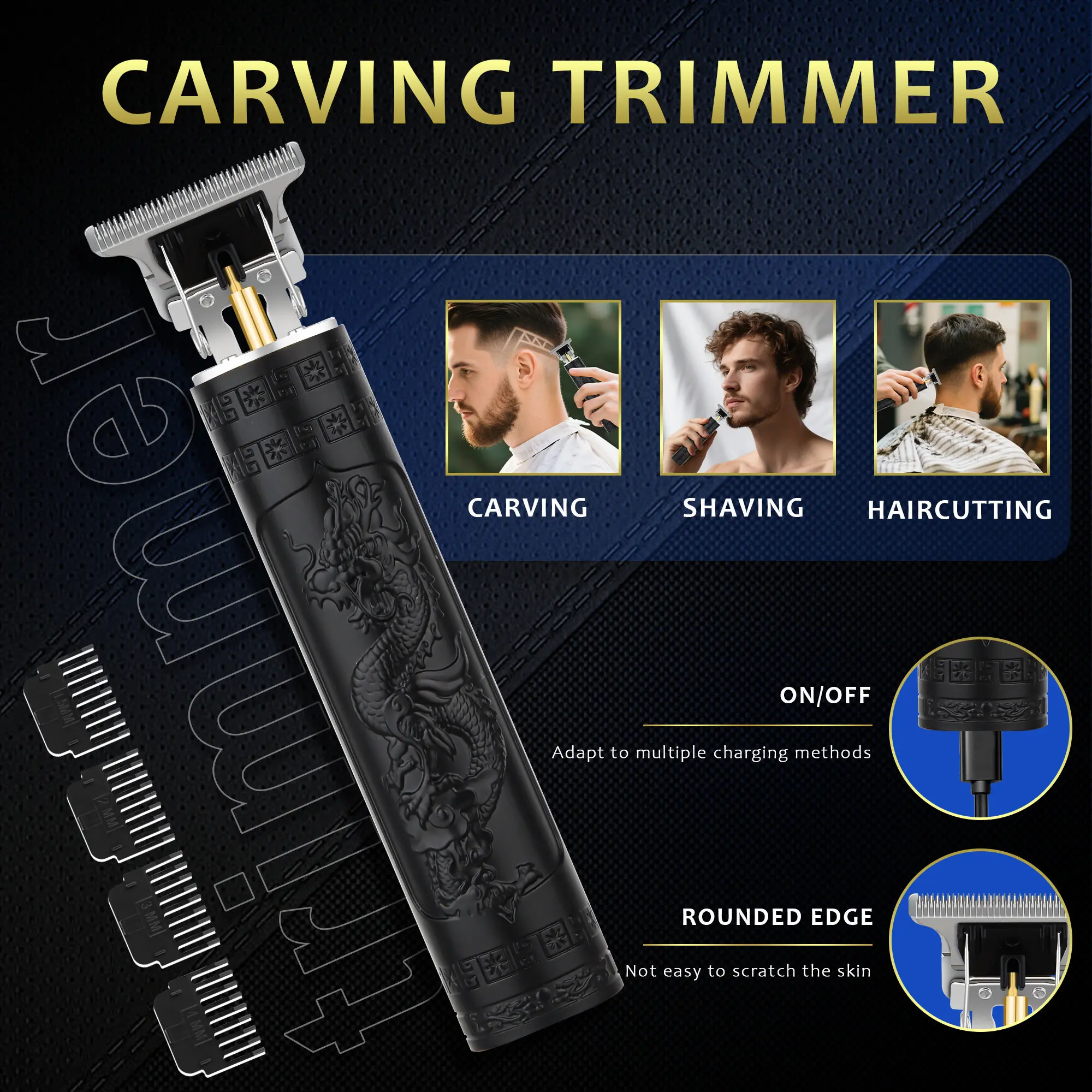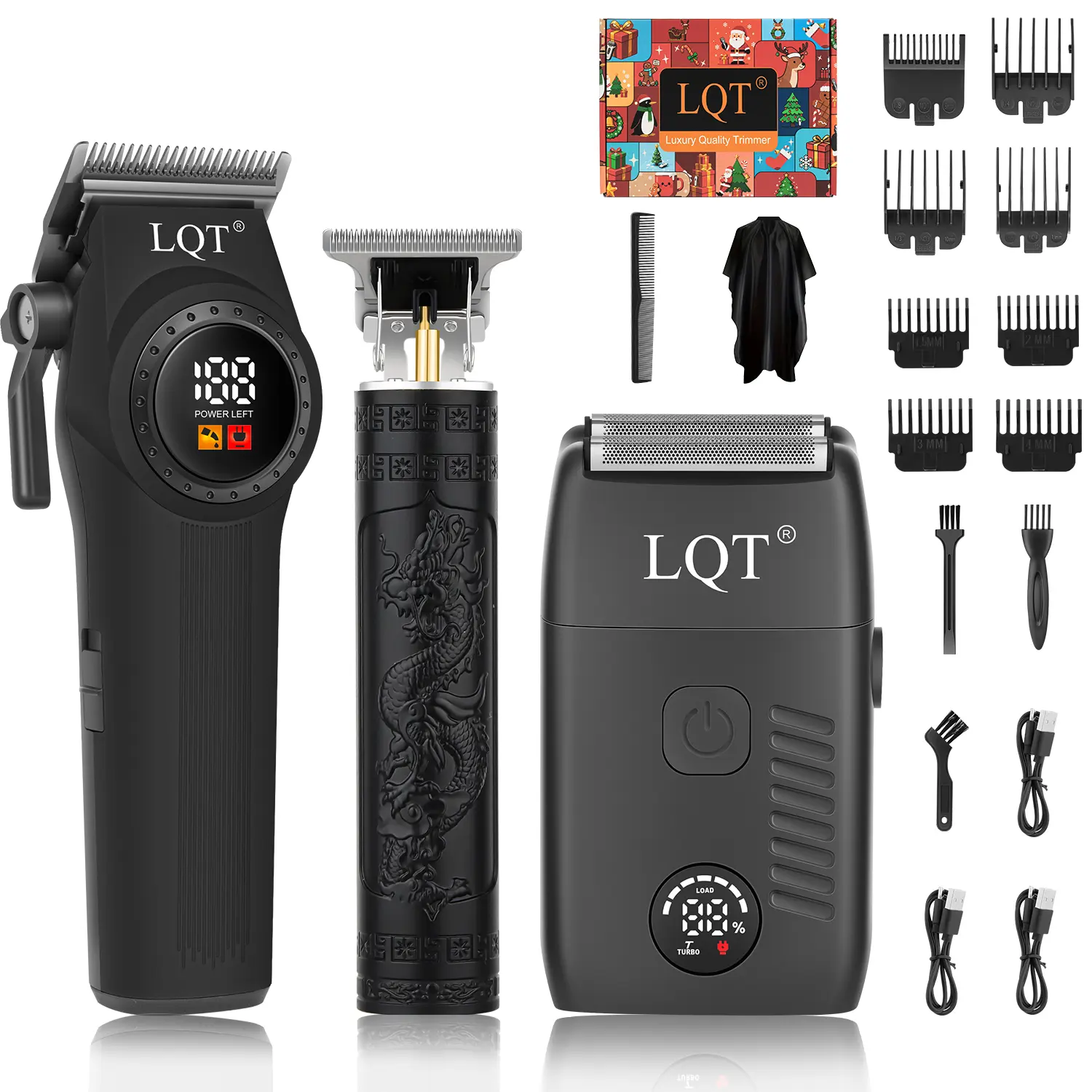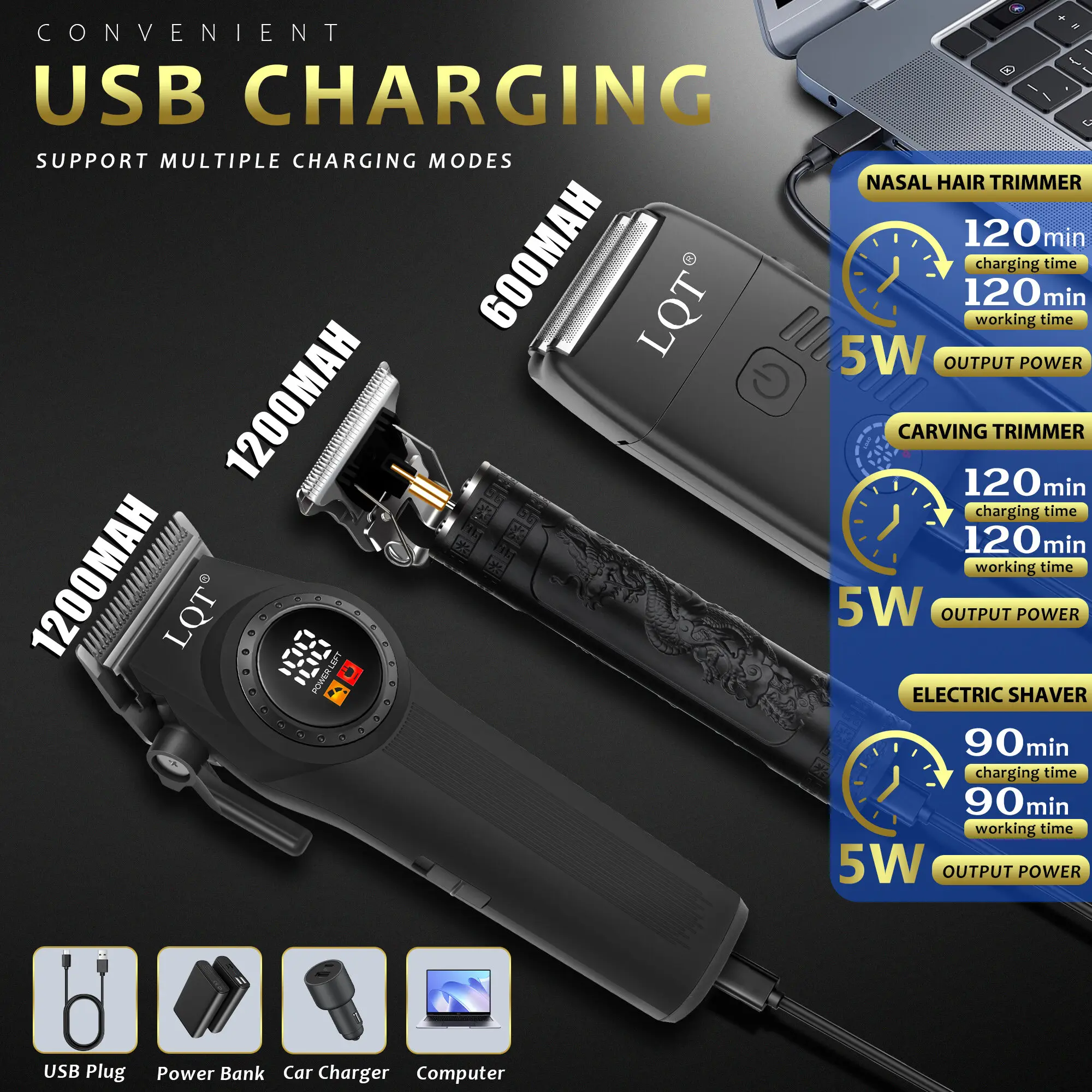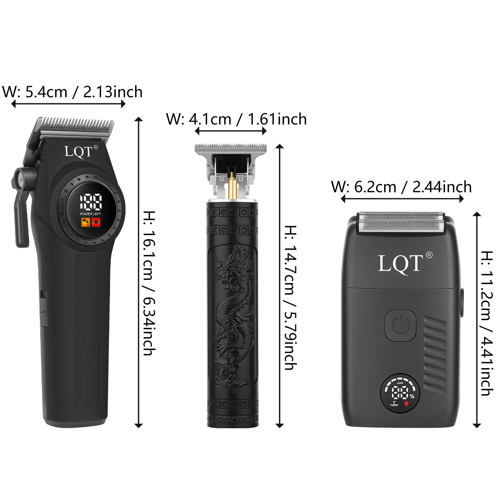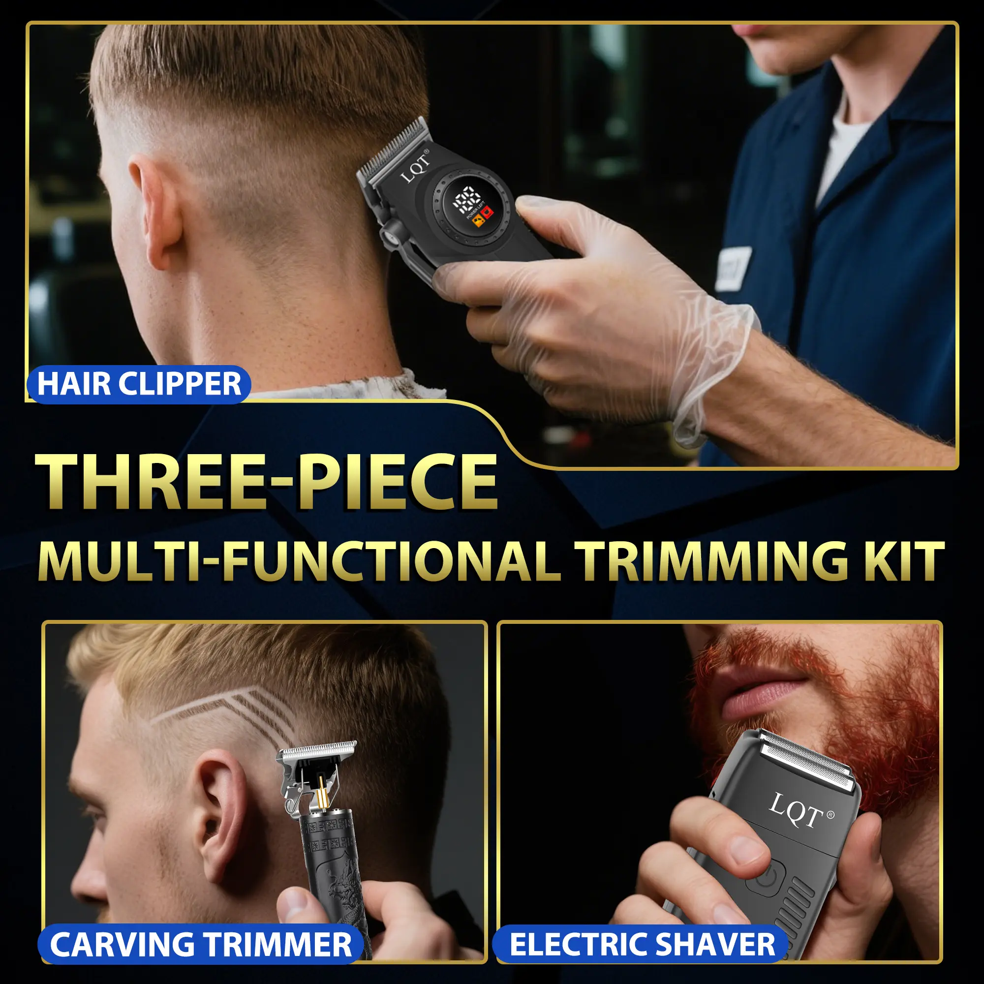 LQT Black Dragon Carved 3-in-1 Men's Grooming Kit, Cordless Hair Clipper with LCD Display, T-Blade Trimmer & Shaver, Complete Rechargeable Barber Set for Salon & Home DIY Fades, Edges & Beard Styling