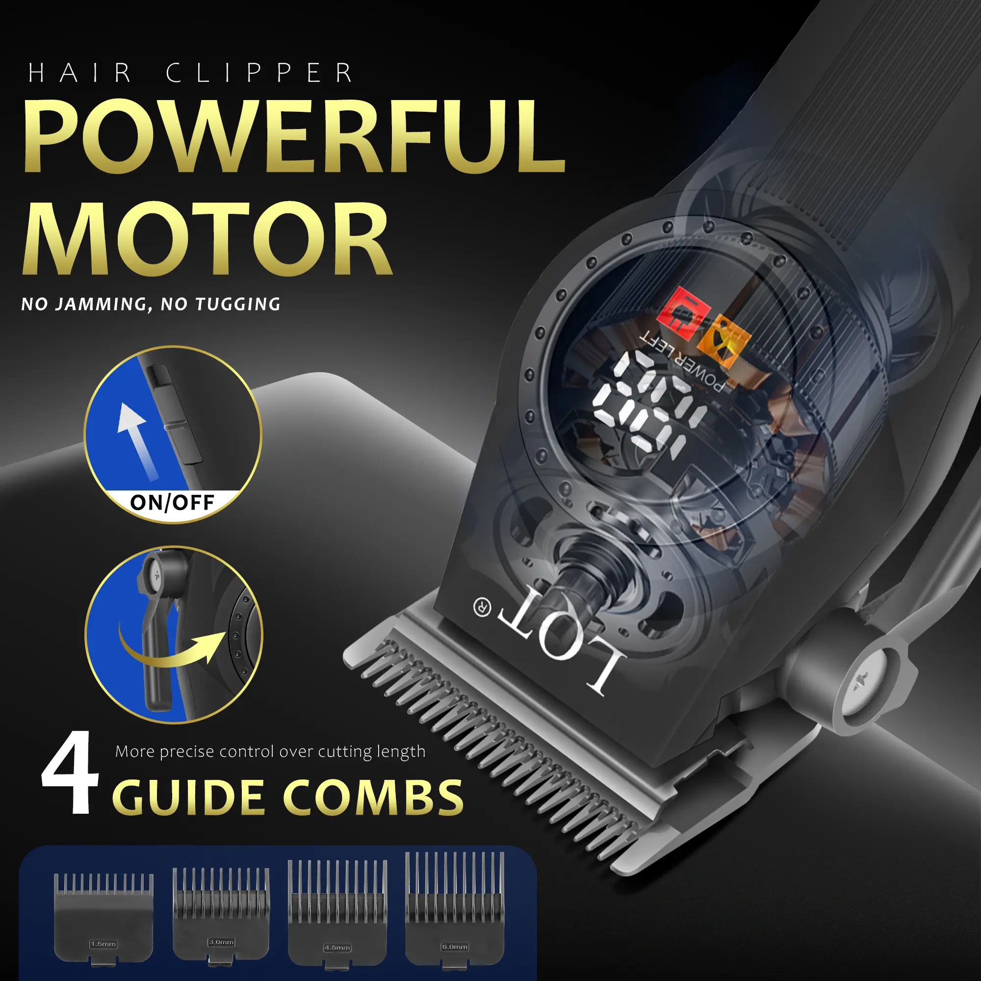 Packed with all essential barber tools (guide combs, cape, combs, brushes, oil, and charging cables), this set lets you skip expensive salon visits and craft salon-worthy looks at home, saving you time and money. Perfect for professional barbers, DIY enthusiasts, and gifting to the modern man who values style and precision.