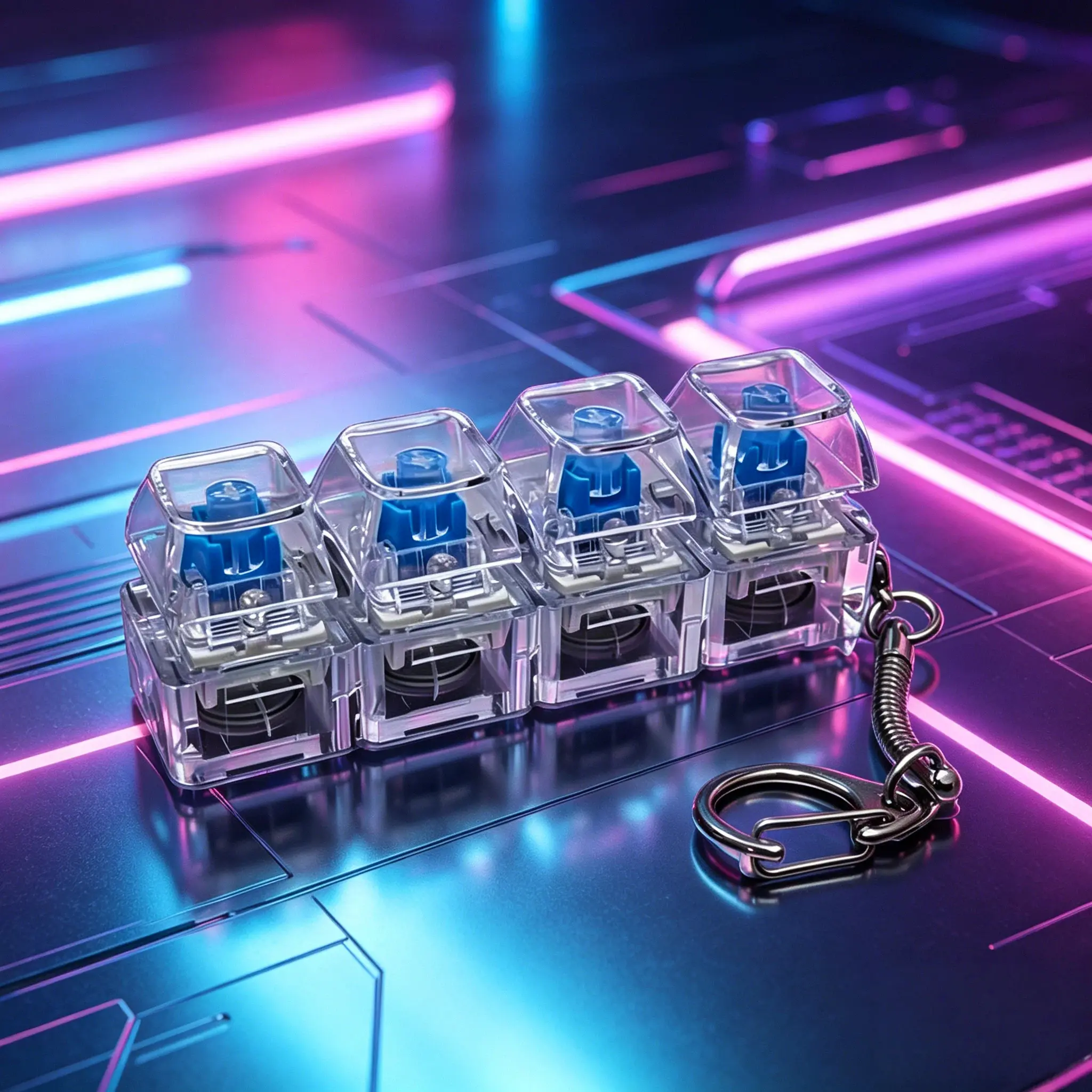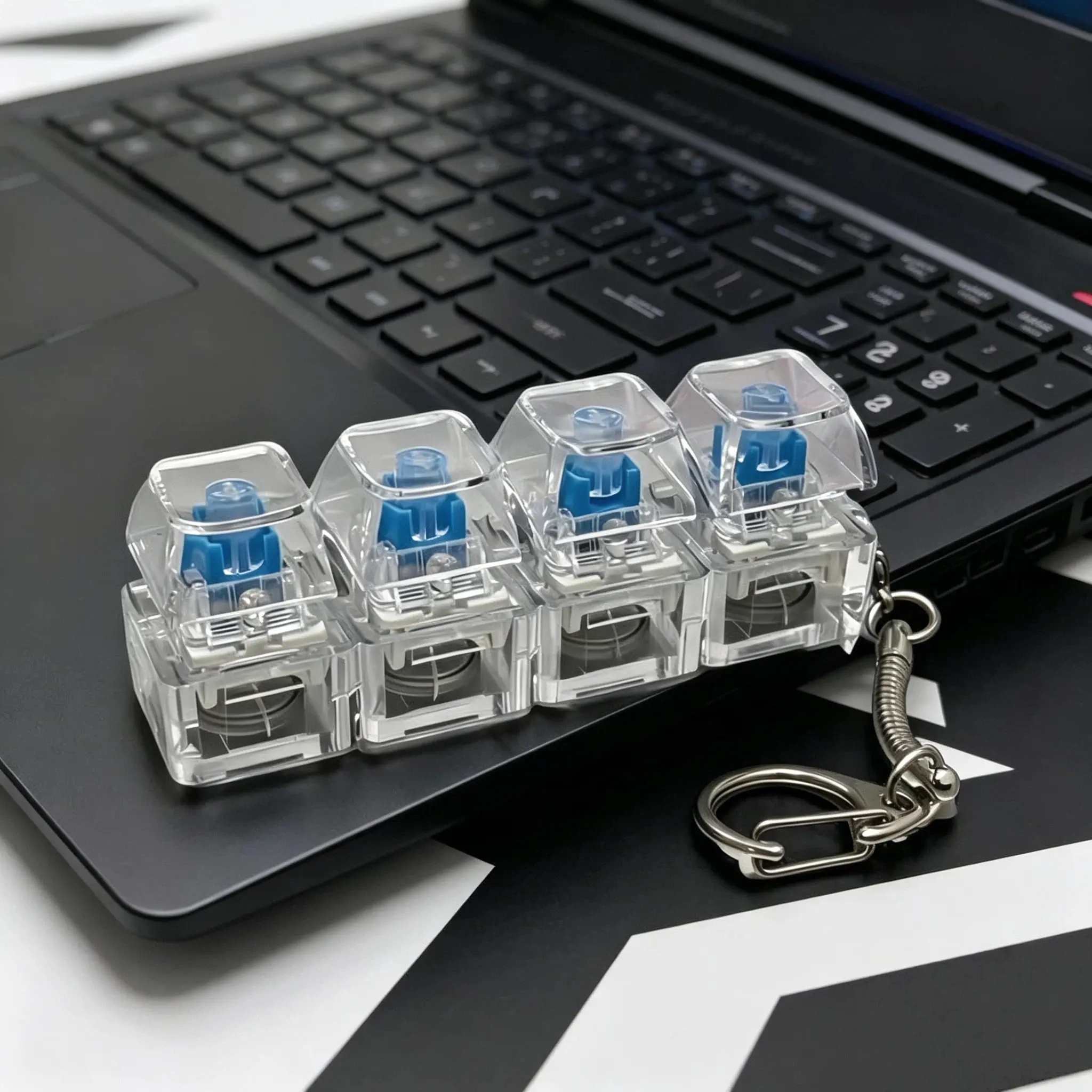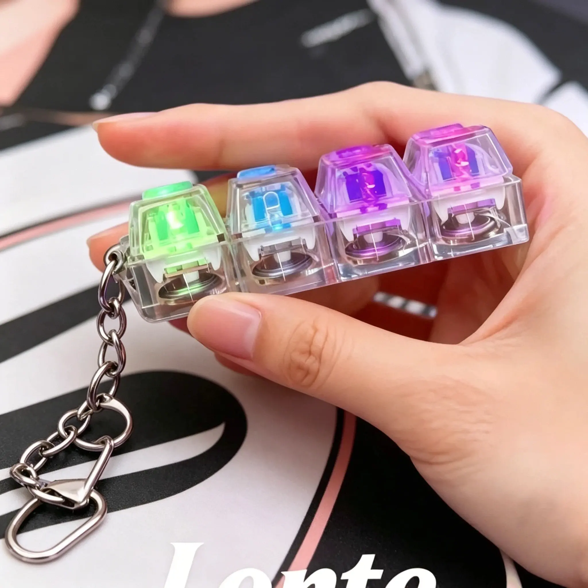 Β·Glowing Transparent Keycap: The keycap is glowing and transparent, adding a unique visual appeal. It's not just a toy but a stylish accessory that can be easily carried around. Enhance your keychain with this innovative fidget toy.