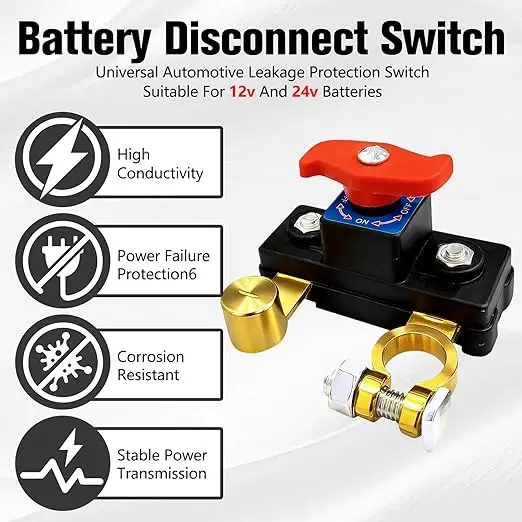 Quickly cuts off power from the battery to stop battery self-discharge and parasitic drain. Also acts as an anti-theft deterrent by disabling the vehicle’s electrical system when not in use.
