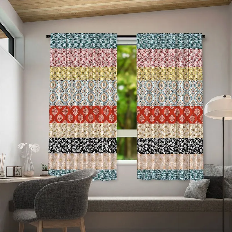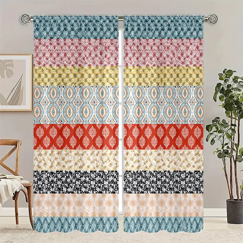 2 pieces of high-definition digital Bohemian-style patchwork pattern printed curtains, made of polyester with semi-transparency, machine washable, suitable for bedrooms, living rooms and home decoration curtains.