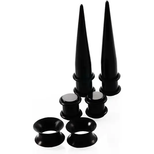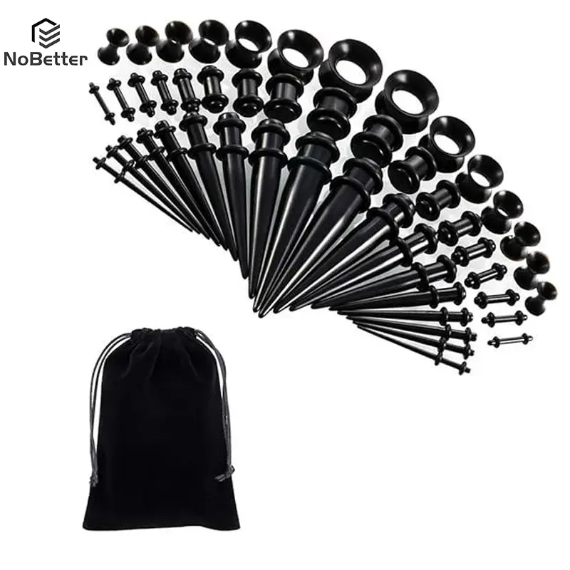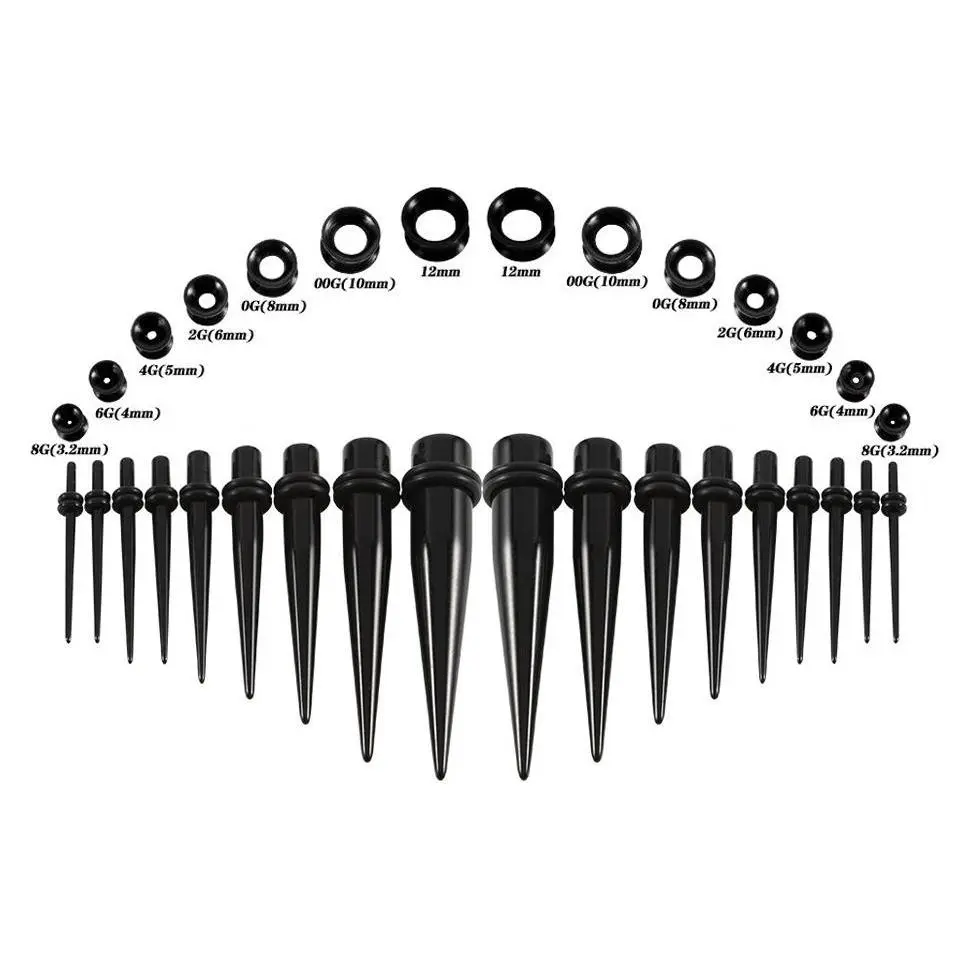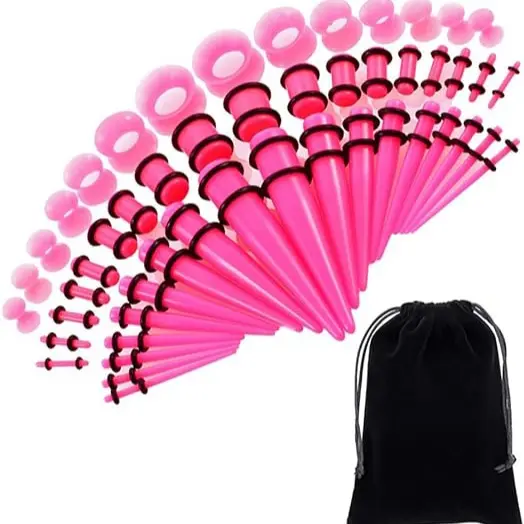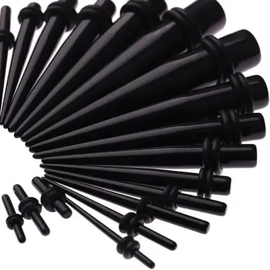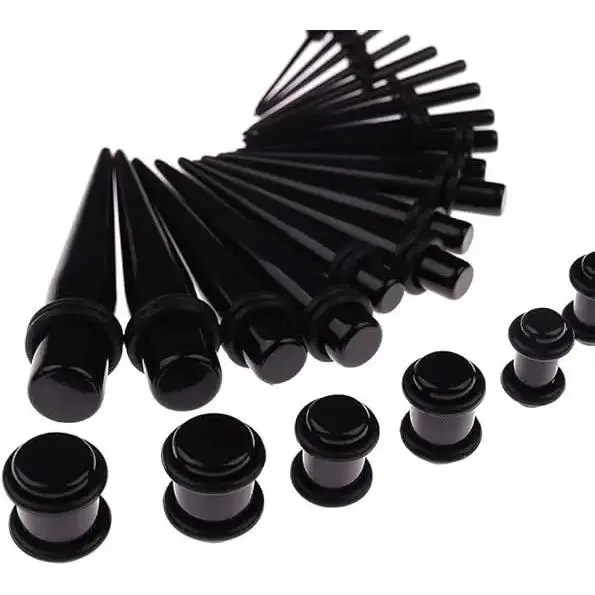 Elevate your ear piercing journey with this comprehensive kit!It includes 18 acrylic tapers and 18 acrylic plugs, both featuring double O-rings.The tapers range from 14G (1.6mm) to 00G (10mm).The plugs match the tapers' sizes, ensuring a seamless expansion process.Each piece is individually packaged for safety and quality assurance.