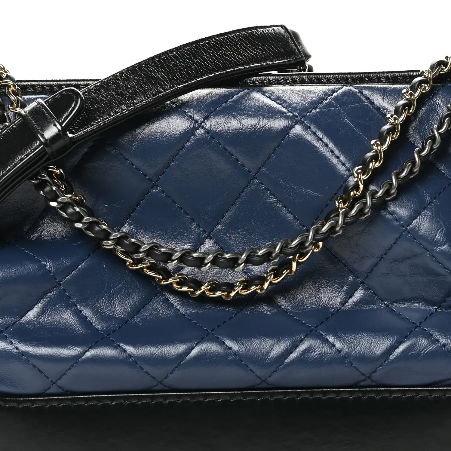 Pre-owned CHANEL leather Shoulder Bags Aged Calfskin Quilted Medium Gabrielle Hobo Navy Black J0022
