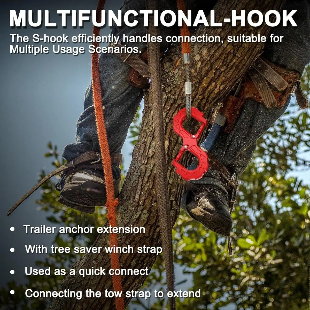 Heavy-Duty Forged S-Type Winch Hook, Dual Recovery Shackle with Anti-Slip Lock, 4x4 Off-Road Towing Hook for Truck/SUV/Jeep