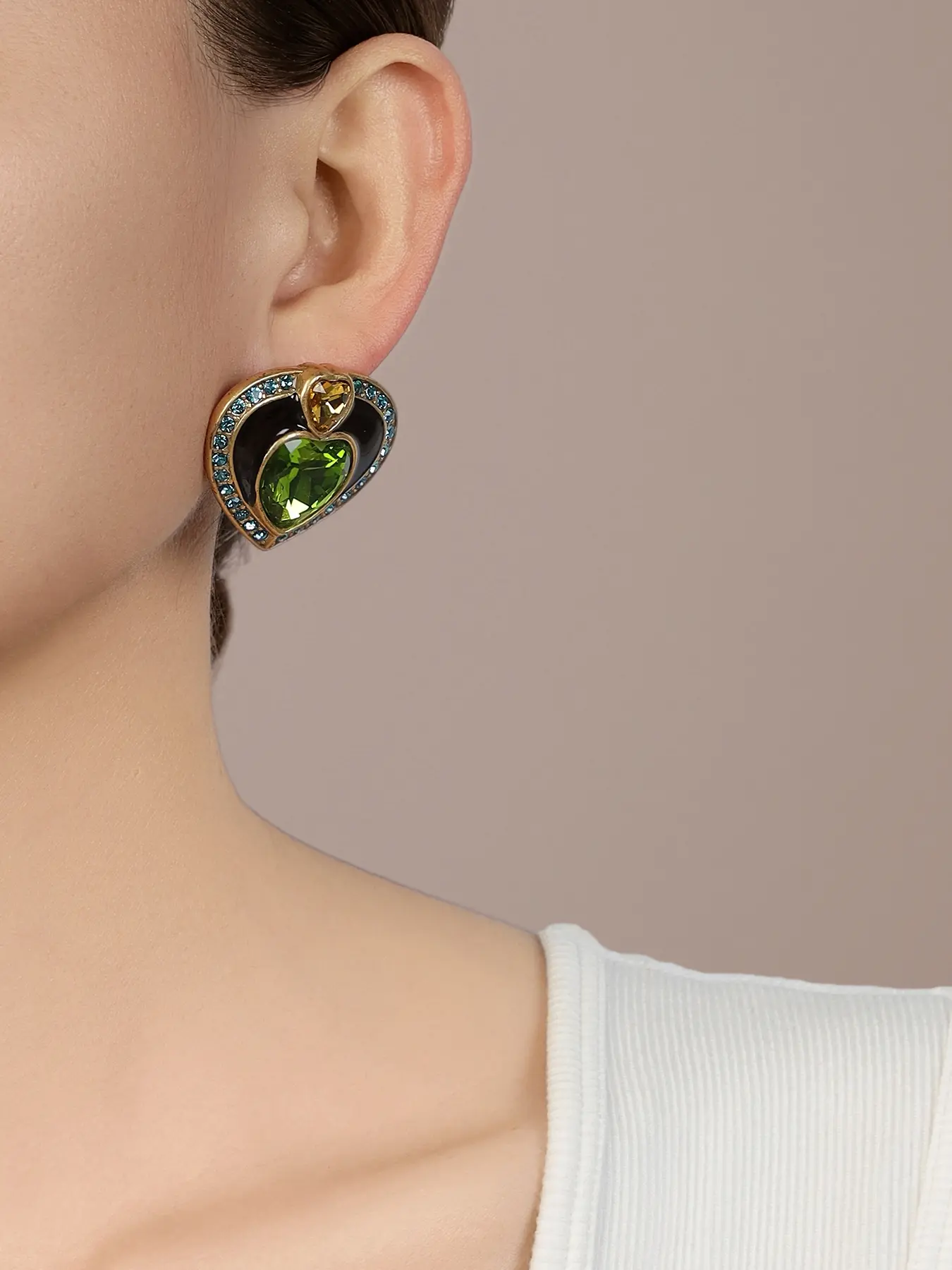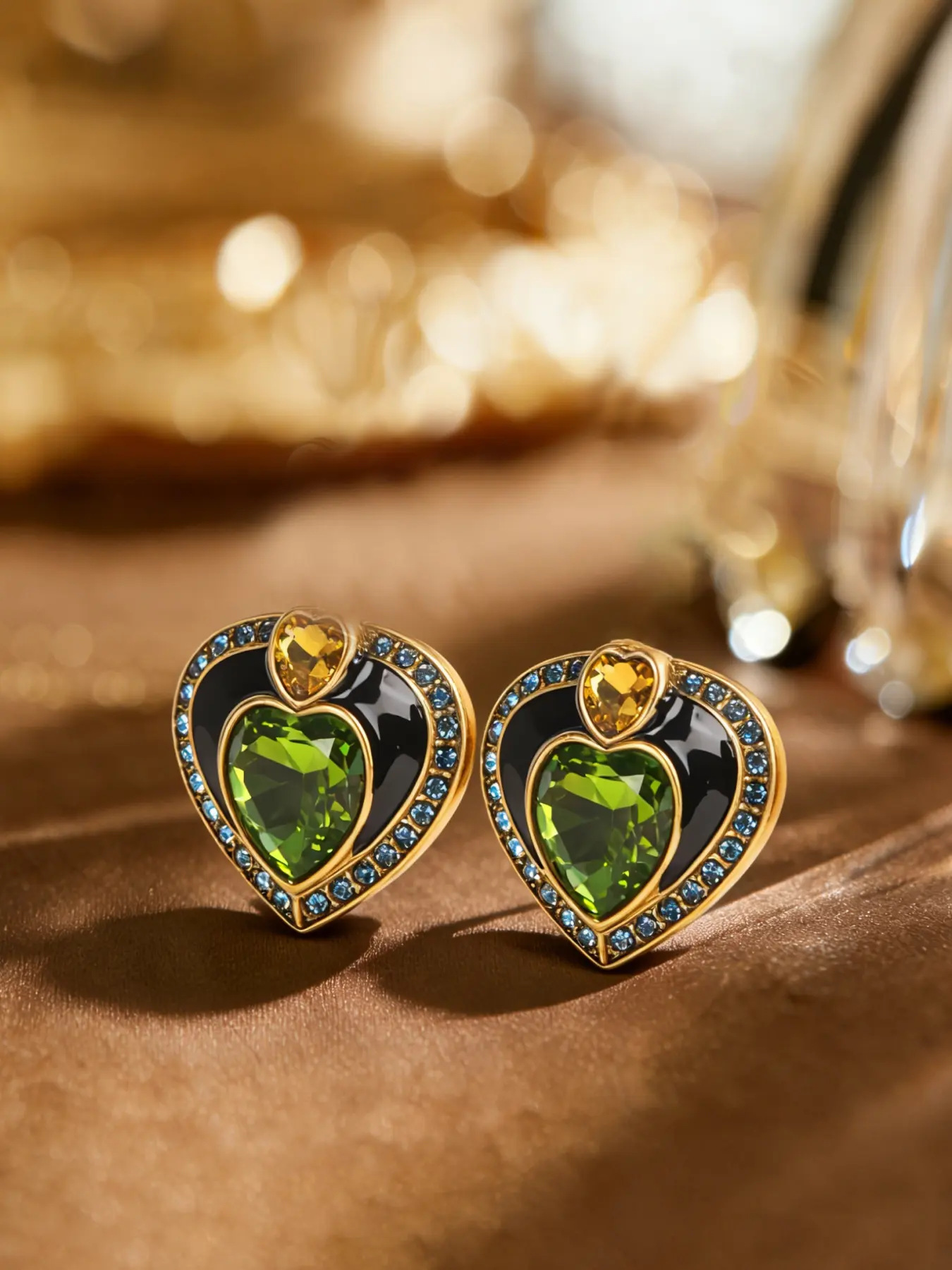 1 pair of fashionable and elegant heart-shaped diamond studded earrings, suitable for daily commuting, vacation and dating, and also a surprising and exquisite small gift.