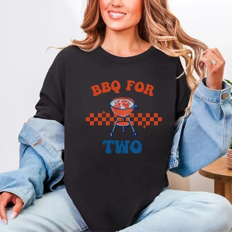 BBQ For Two - My Dad Boy T-shirt, 4th of July Pregnancy Announcement Shirt, Gift for Couples Pregnancy Reveal Tees, Eating for Two Tee, Gift for Expecting Mom