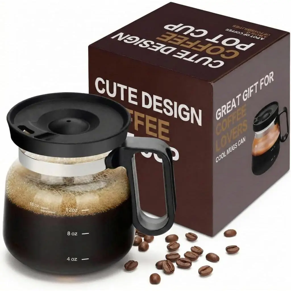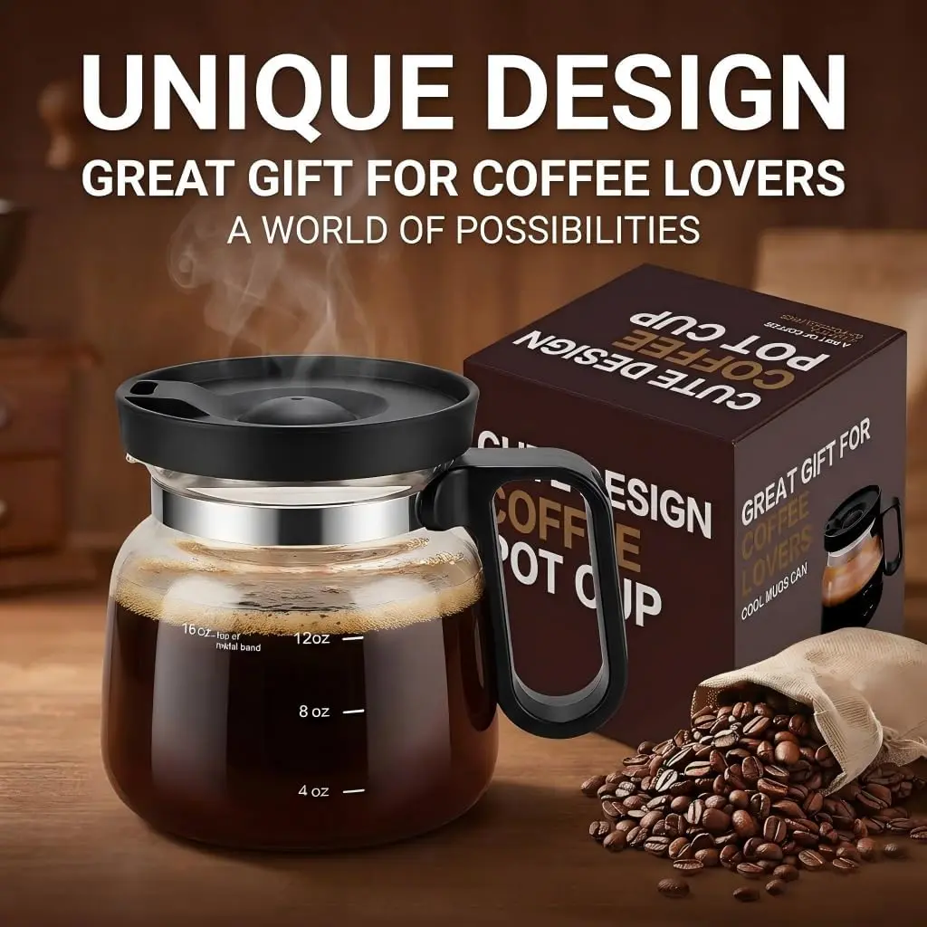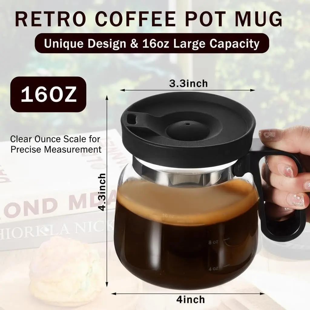 16oz Glass Coffee Pot Mug with Spill-Proof Lid, Mini Coffee Pot Shaped Cup, Novelty Clear Borosilicate Glassware for Hot Tea & Latte, Funny Office Desk Gift for Coffee Lovers