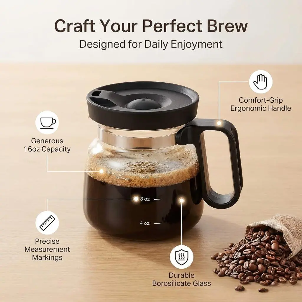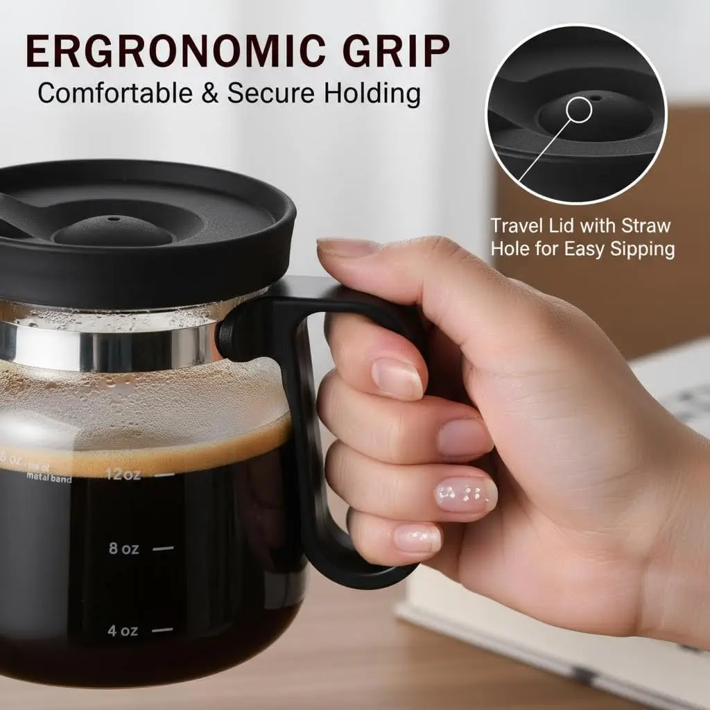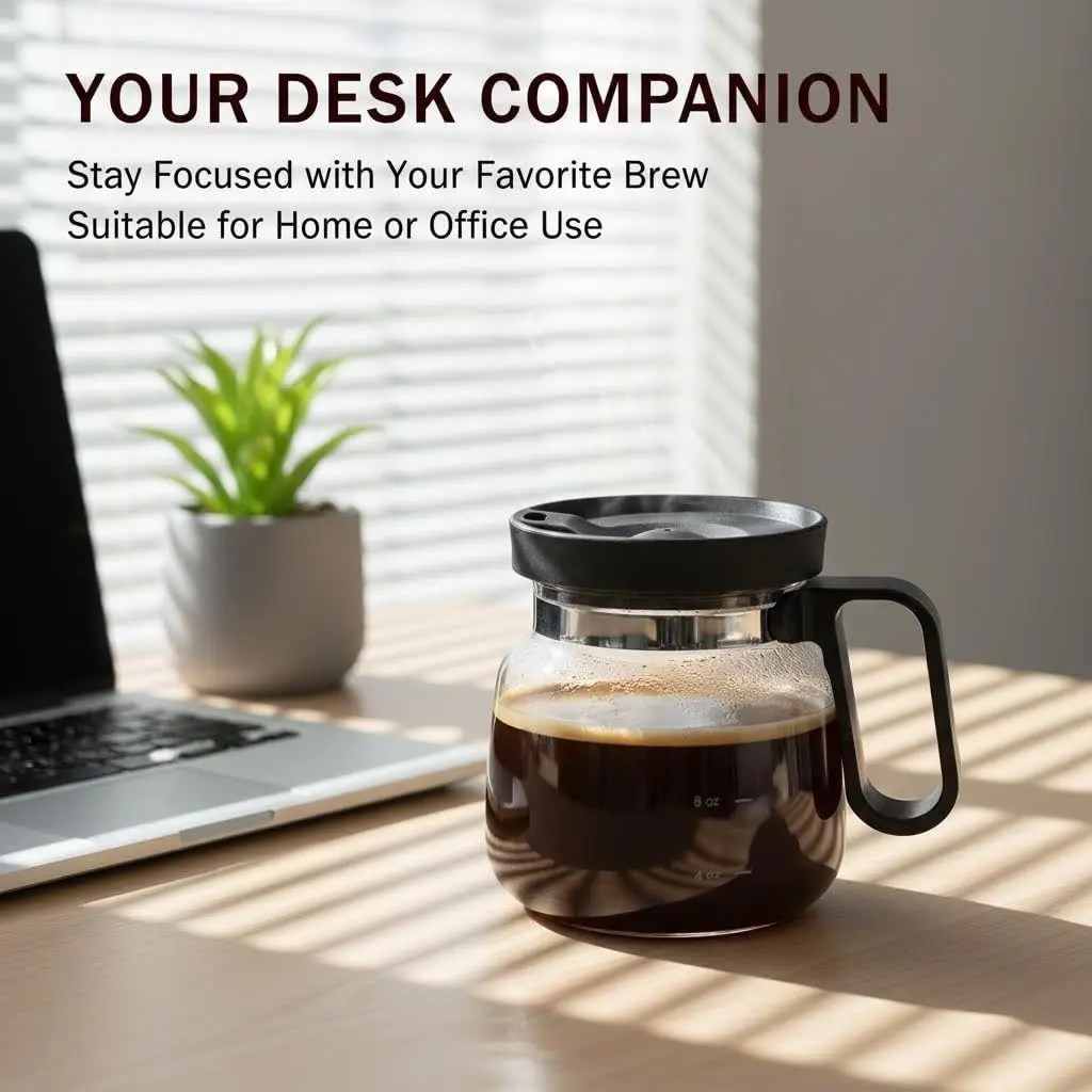 16oz Glass Coffee Pot Mug with Spill-Proof Lid, Mini Coffee Pot Shaped Cup, Novelty Clear Borosilicate Glassware for Hot Tea & Latte, Funny Office Desk Gift for Coffee Lovers