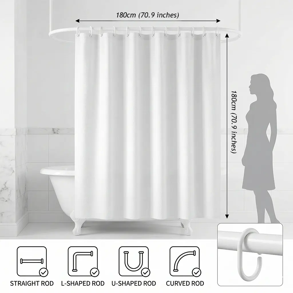 Geometric corrugated no hook shower curtain, double-layer shower curtain with inner lining, soft polyester fabric, fashionable and simple style home decoration, bathroom accessory, 72x75in