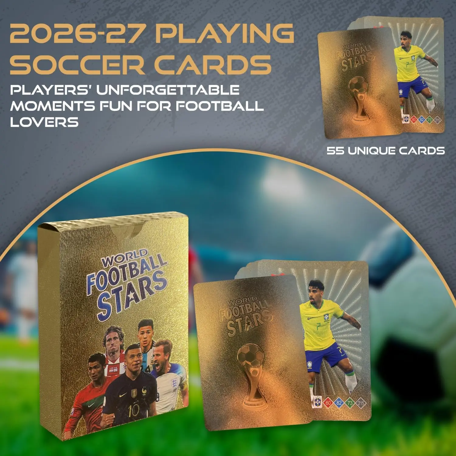 2026-27 Playing Soccer Cards | 55 Unique Cards for Soccer Players | Unforgettable Moment for Friends, Siblings & Soccer Fans | Printed on Premium Paper – Golden - Not Orignal