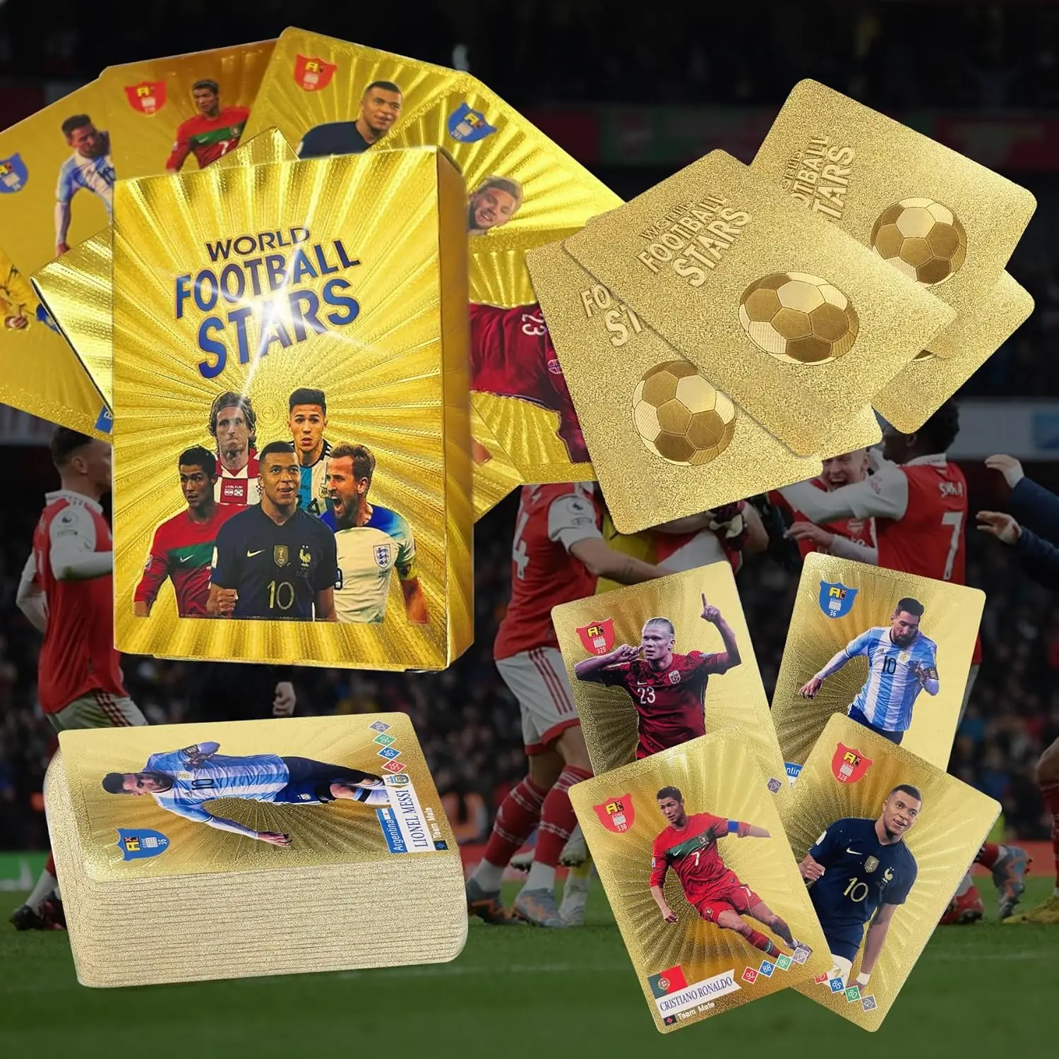 55PCS World Cup Soccer Cards, 2024-2025 Europa League Soccer Trading Cards Set, Shimmering Gold Collectible Football Cards Gift for Kids, Fans ansd Adult, Not Original (Gold)