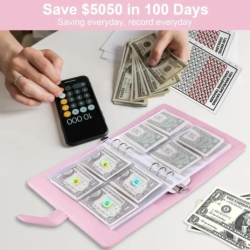 100 Envelopes Money Saving Challenge A5 Money Saving Binder,Budget Binder Savings Challenges Book with Cash Envelopes to Save $5,050,2026 New A5 Budget Planner with Cash Envelopes,Daily Money Management Notebook,Perfect Mother's Day Gift