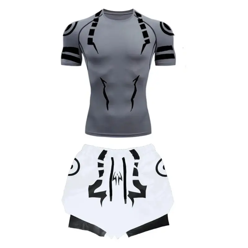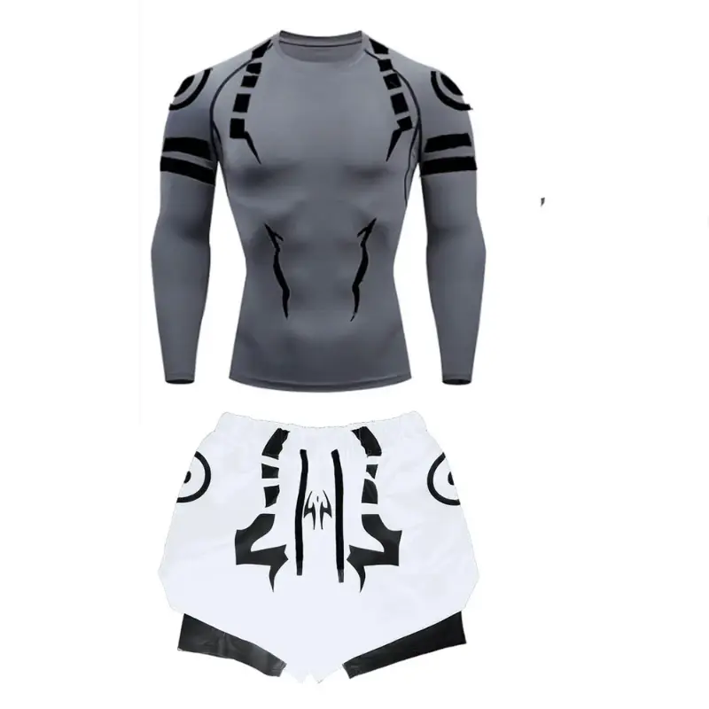 Anime Jujutsu Kaisen Compression Set Fitness Suit For Men Quick Dry 3D Compression Shirt+Gym Shorts Running Workout Sportswear