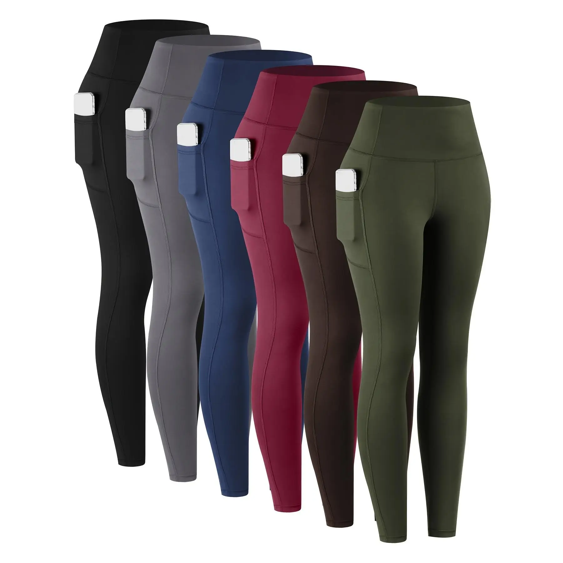 6pcs High Waist Cropped Leggings with Pockets for Women, 78% Polyester 22% Elastane Knit Fabric, Solid Color All-Season Casual Style, Casual Leggings|Sleek Design|Smooth Texture, High Waisted Leggings