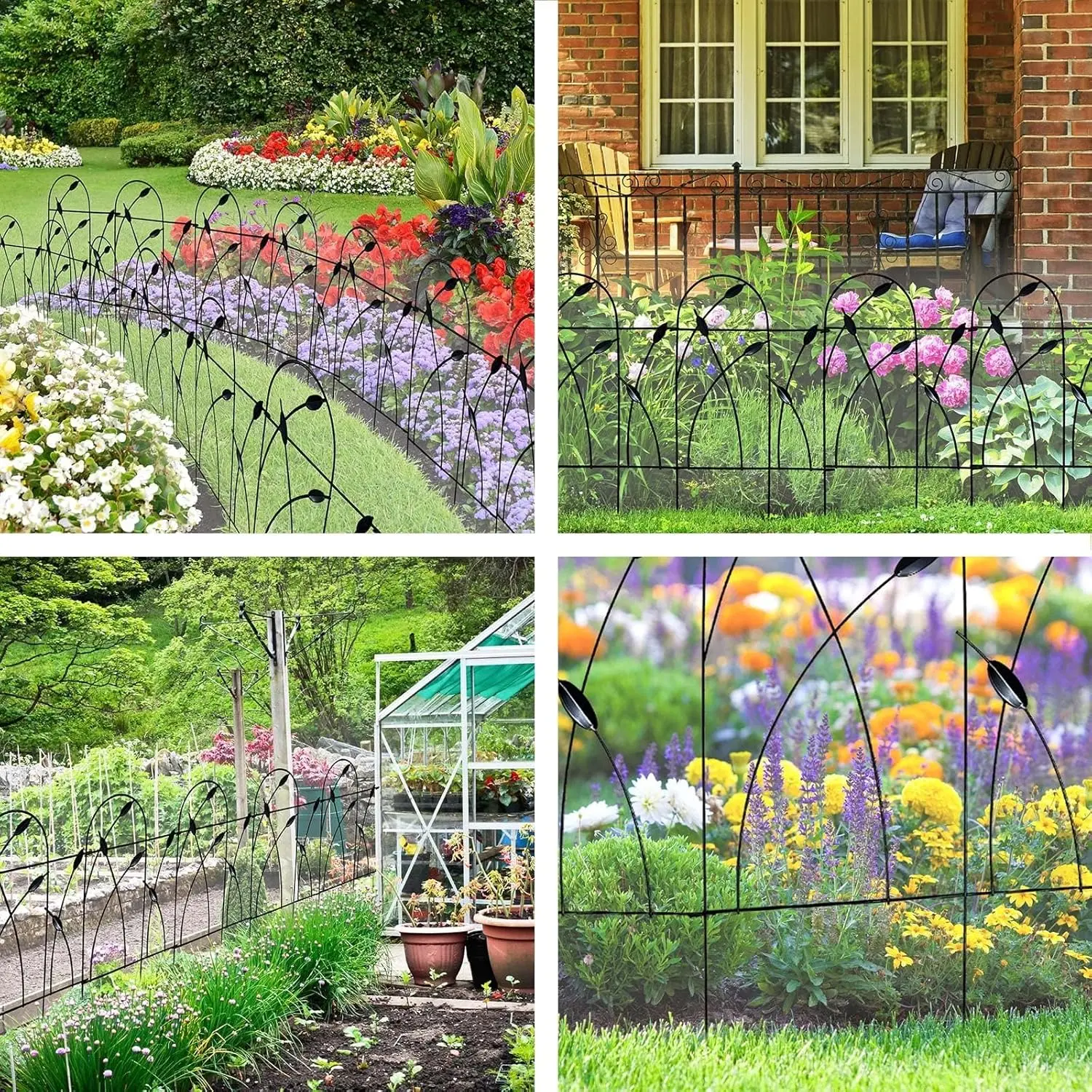 ·【Wide range of uses】Create an elegant and functional border around your plants or walkways, or simply add a section for architectural interest around your patio. This small Iron fence can be used as yard landscape edging fence,such as path edging fence, garden border fence, folding fence, tree guard,flowerbed border, vegetable border fencing,etc.