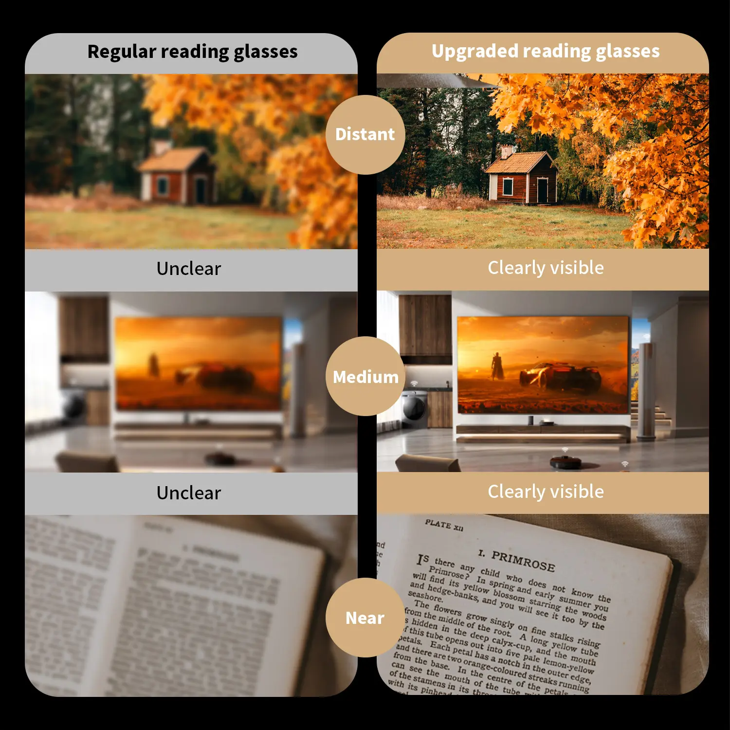 Automatically adjusts focus for sharp vision both near and far. No more taking glasses on and off for reading, driving, or using your phone — effortless convenience for every daily moment.