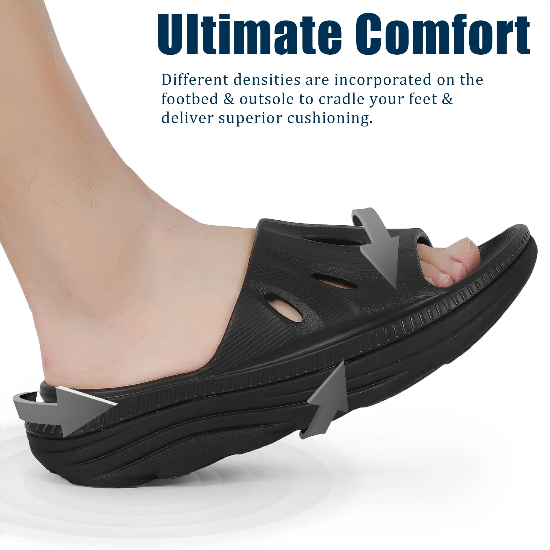 [Ultra Comfort]: These women’s recovery slides are built with 1.6'' squishy EVA midsoles for shock-absorption and unbeatable cushioning, making every step feel like walking on clouds.