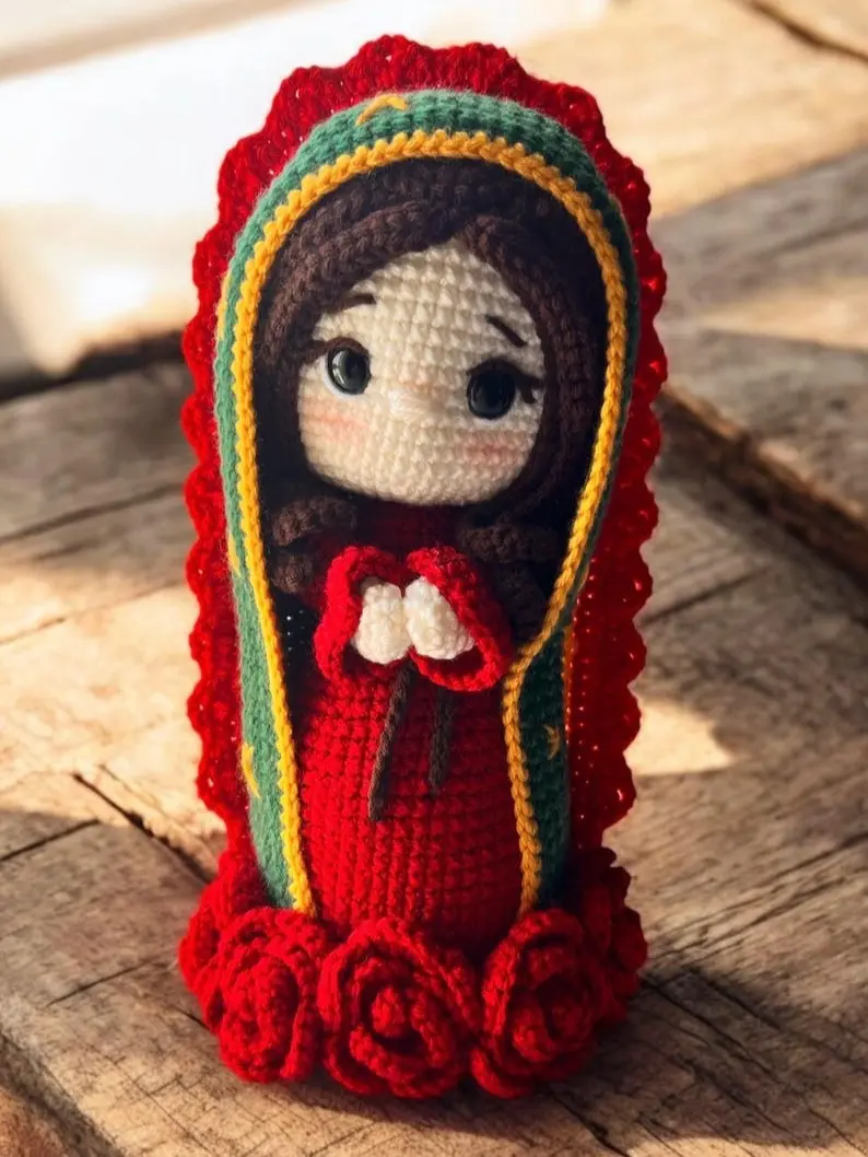 Handmade Crochet Virgin Mary Doll, Amigurumi Our Lady of Guadalupe Statue, Catholic Religious Gift, Christian Home Decor, Mom Gift