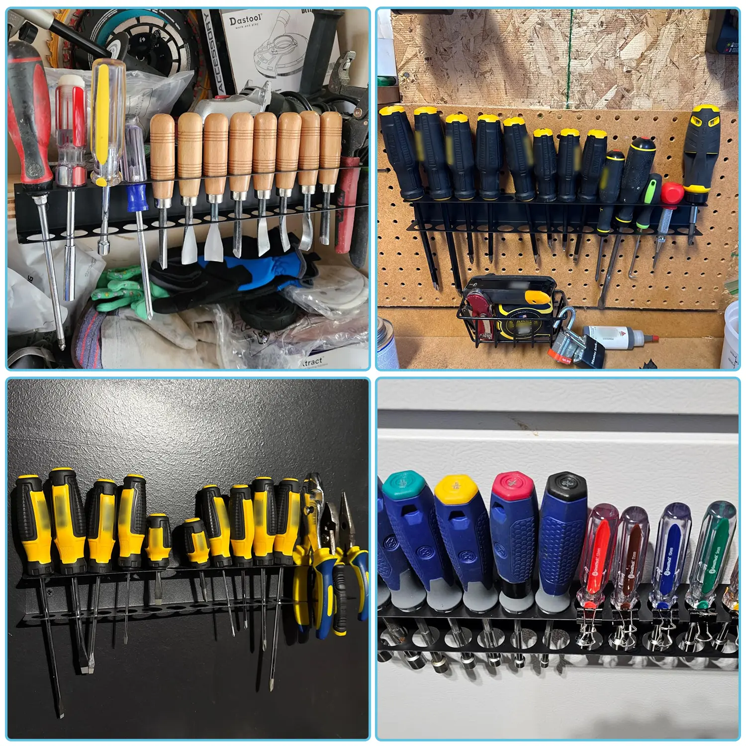 • Quick Tool Accesse:Easily find pliers and screwdrivers with this wall mounted screwdriver organizer, which increases productivity by keeping your frequently used tools organized and within easy reach