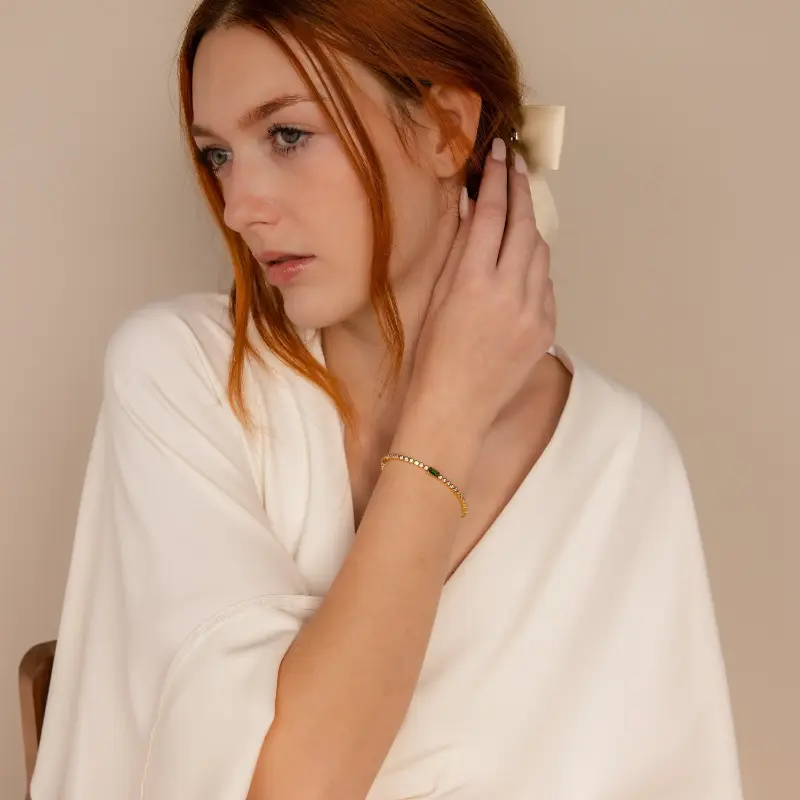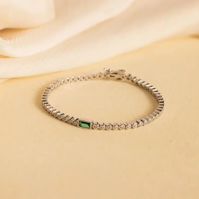 Our Emerald Baguette Tennis Bracelet is a perfect birthday gift for that someone special. Bezel CZ Diamond gemstones create the rest of the bracelet chain and allow every angle of this statement jewelry piece to sparkle. Gift it to your wife or best friend and it is sure to be a hit!