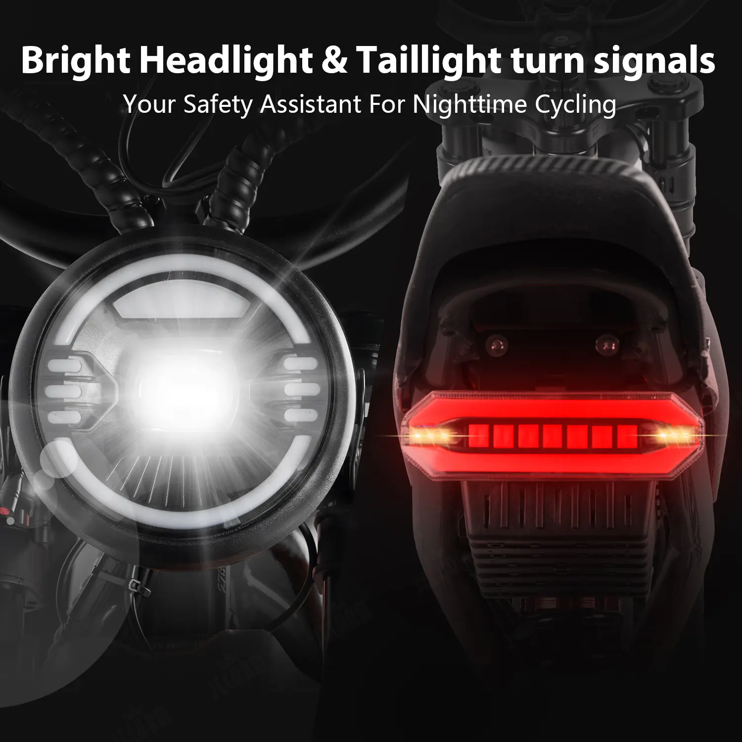 ·LED Lights: Bright front and rear lights for safe night rides — explore after sunset with confidence