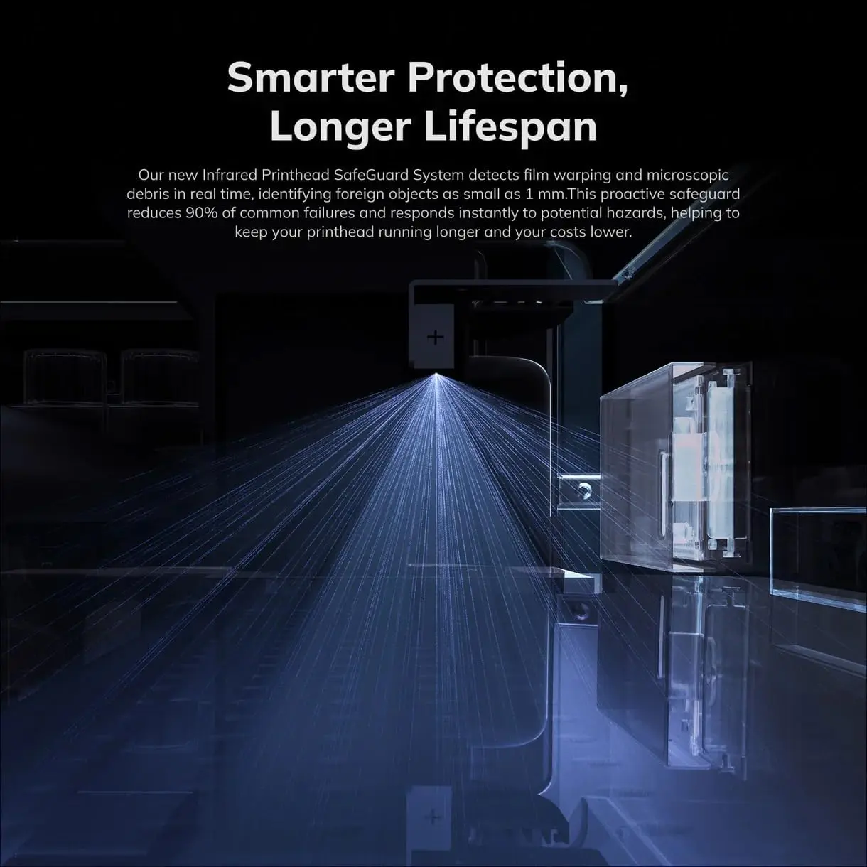 ·The Infrared Printhead SafeGuard System detects film warping and microscopic debris in real time, identifying foreign objects as small as 2 mm.