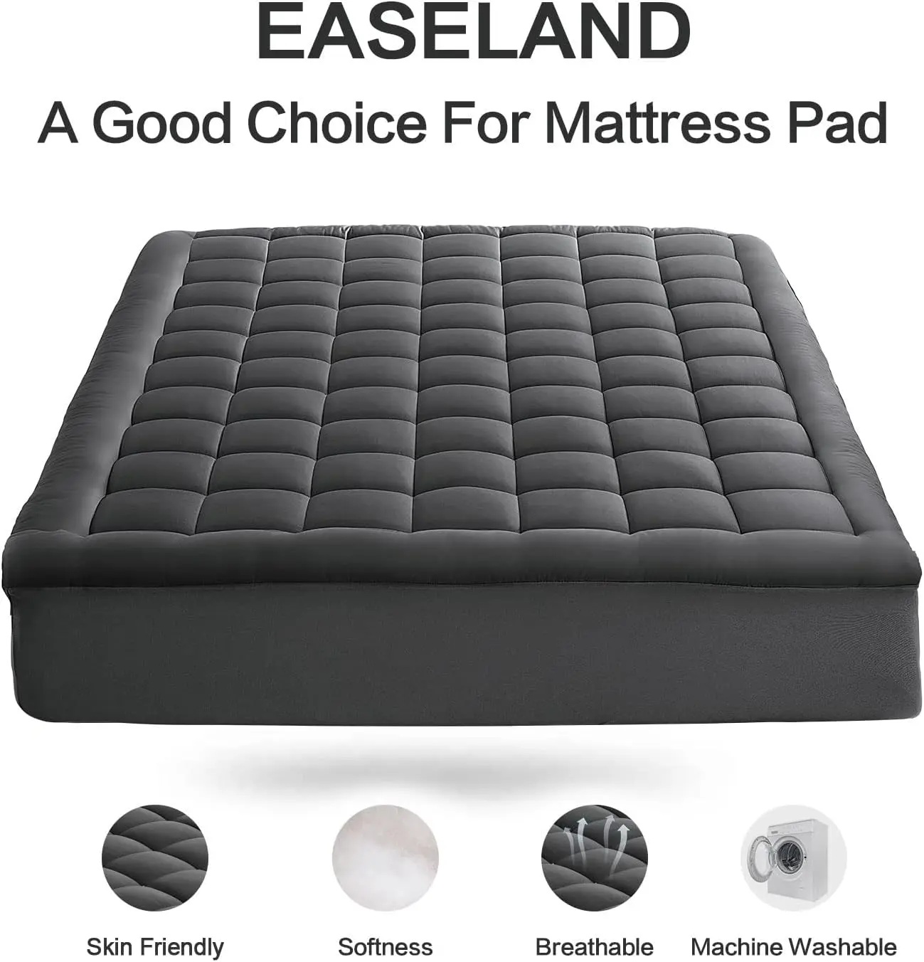 EASELAND Cooling Mattress Topper – Quilted Pillow Top Mattress Pad with Cotton Cover, Deep Pocket (8-21”), Machine Washable & Comfortable