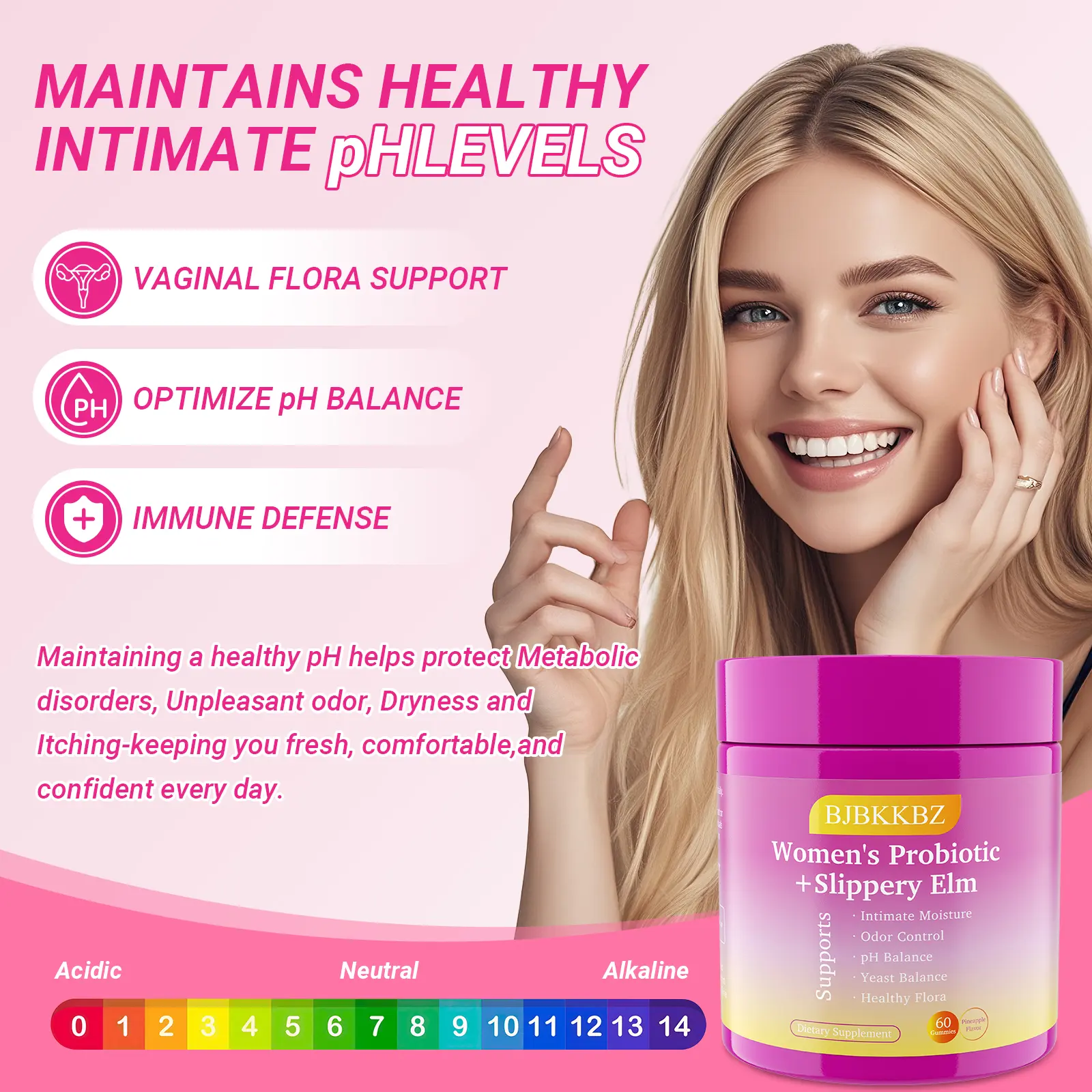 BJBKKBZ Women's Probiotic + Slippery Elm Gummies, Pineapple Flavor, Supports pH Balance, Yeast Balance & Intimate Health, 60 Count Dietary Supplement