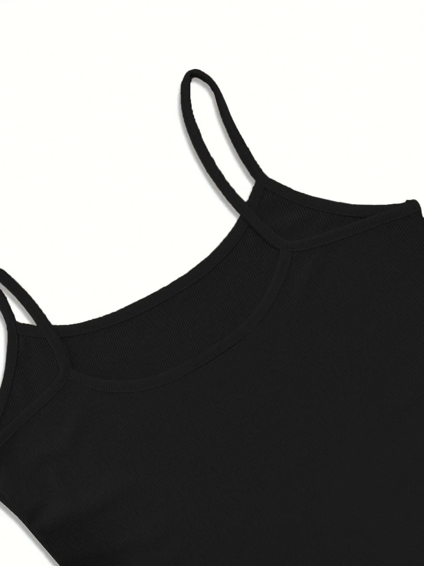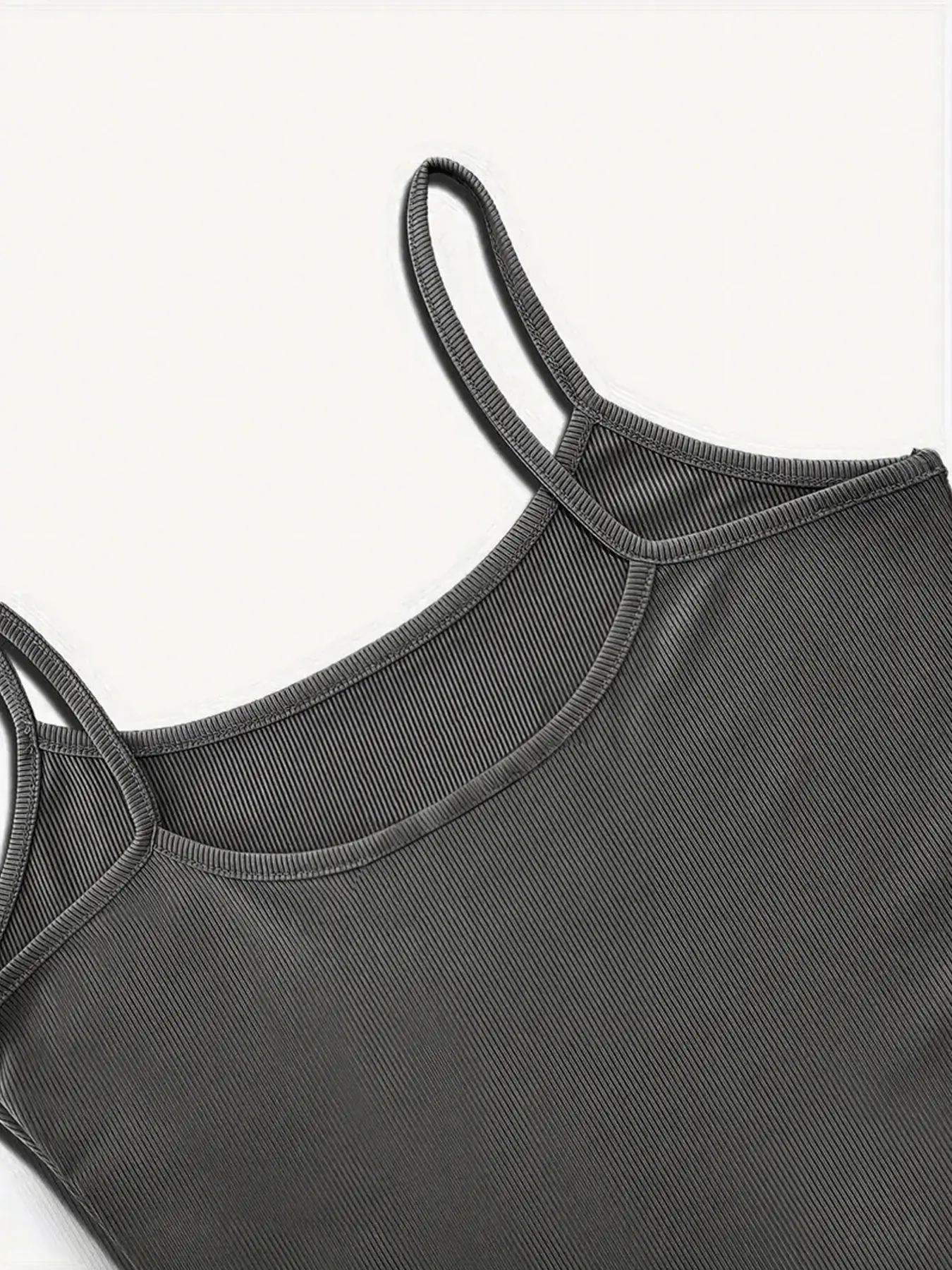 Adjustable waist cropped camisole top and elastic-waist fitted shorts, summer casual wear, women’s two-piece set