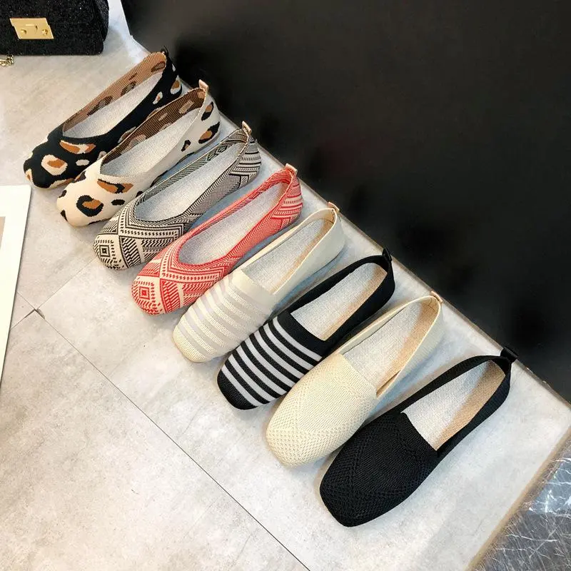 Elevate your casual wardrobe with these breathable knit slip-on flats. Perfect for everyday wear, these shoes feature a soft sole and square toe design. Ideal for comfortable walking, they come in various boho prints. Choose from leopard, stripes, and geometric patterns. Each pair is a stylish addition to your collection.