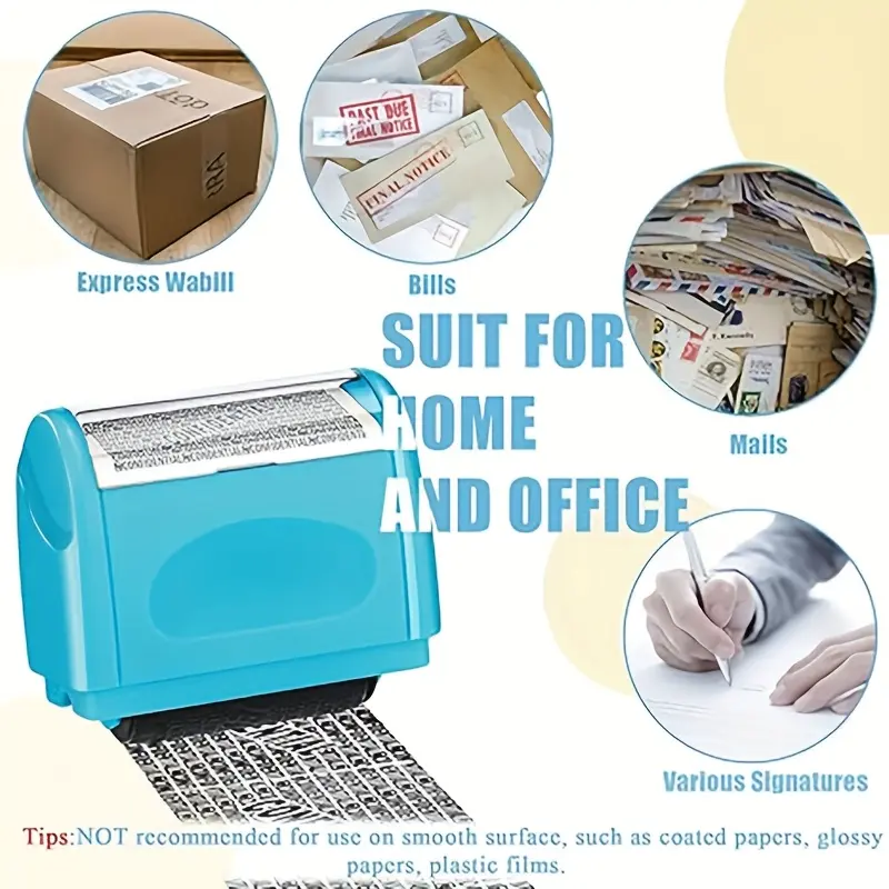 Identity Privacy Roller Stamp - Includes 3 Refill Ink Cartridges - Wide-Coverage Security Seal for Confidentiality, Address Obfuscation, and Privacy Protection