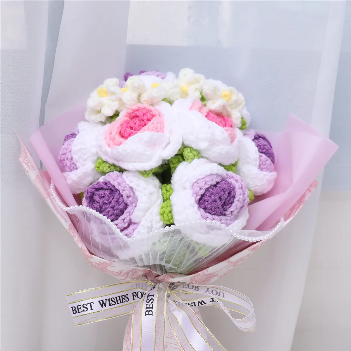 Handmade crochet flowers bouquet,Decorative flowers for home party wedding anniversary festival,1 count