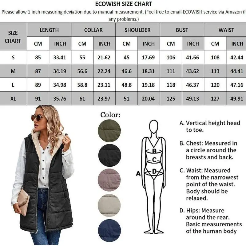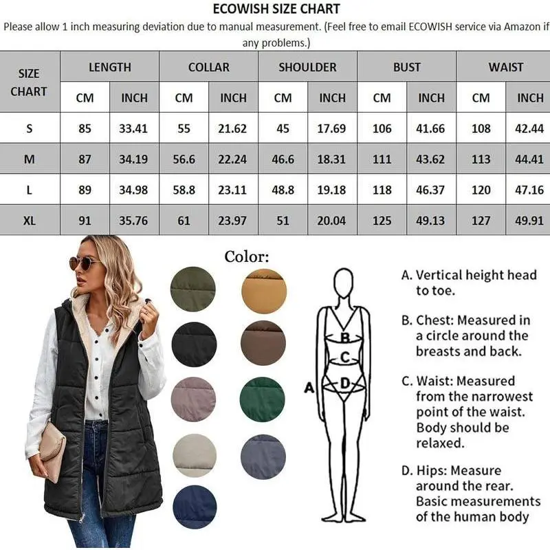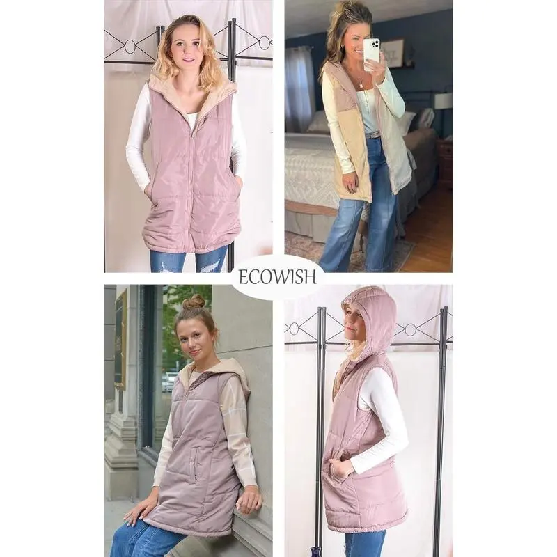 ? ?High-quality material with cozy fleece lining for maximum comfort and warmth in all seasons. ? ?Sleeveless, hooded, full zipper, mid-length, solid color, relaxed fit, reversible design with side and inner pockets for added convenience. ? ?Stylish options in Bean Paste Pink, Light Khaki, Army Green, Navy Blue, and Black for various fashion statements. ? ?Versatile and easy to style, perfect for pairing with sweatshirts, sweaters, leggings, jeans, dresses, or boots for a glamorous look. ?Available in Small, Medium, Large, X-Large; follow the measurement chart for the perfect fit. Easy care with hand or machine wash options. ? Suitable for daily wear, workouts, office, parties, travel, school, clubbing, outdoor activities, holidays, vacations, shopping, and hiking. ? ? ? ? ? ? ? ? ? ?