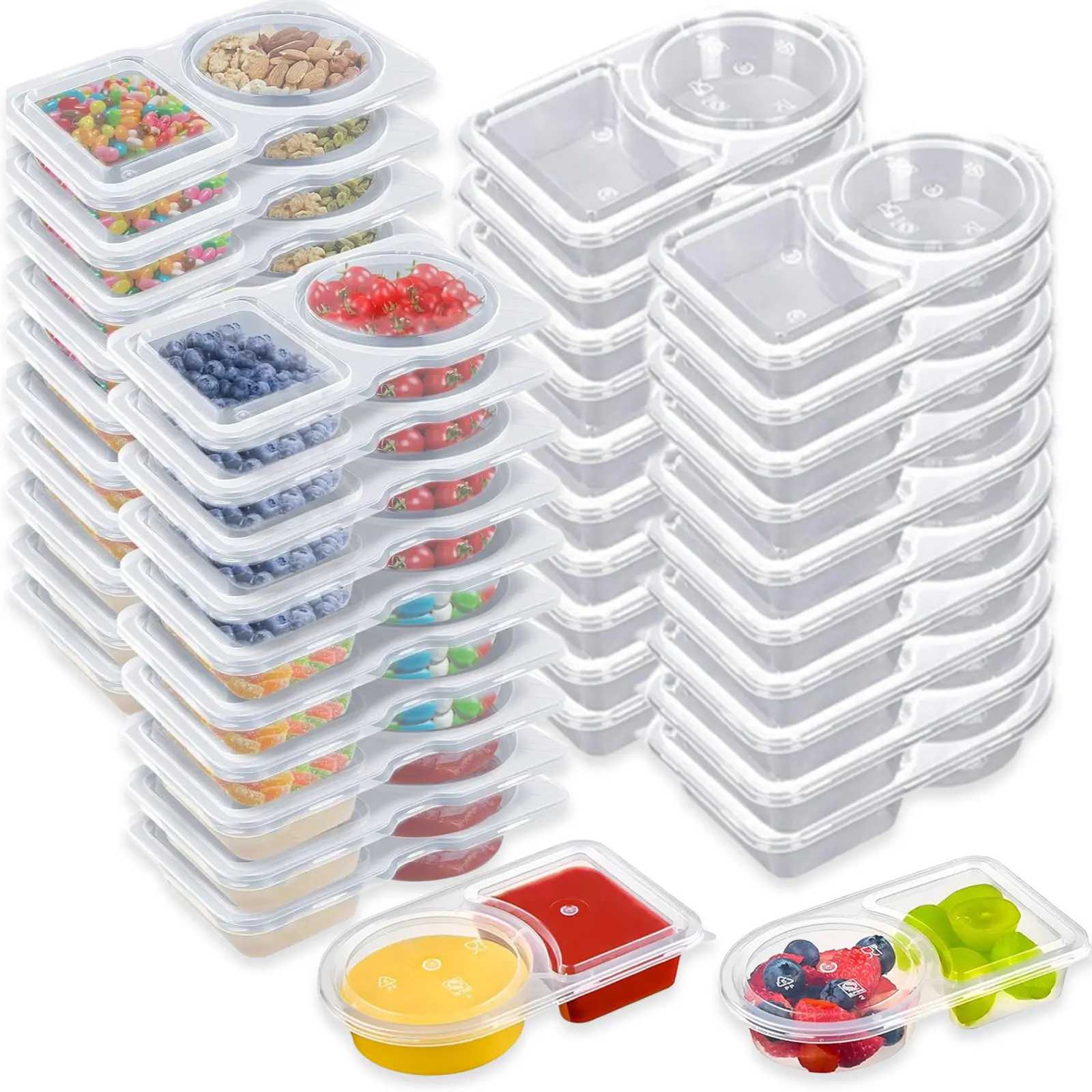 40 Pack Reusable Snack Containers 2 Compartment with Lids Mini Sauce Boxes Lunchable Container for Kids Adults Traveling Going Out Home School Office Picnic Daily Use