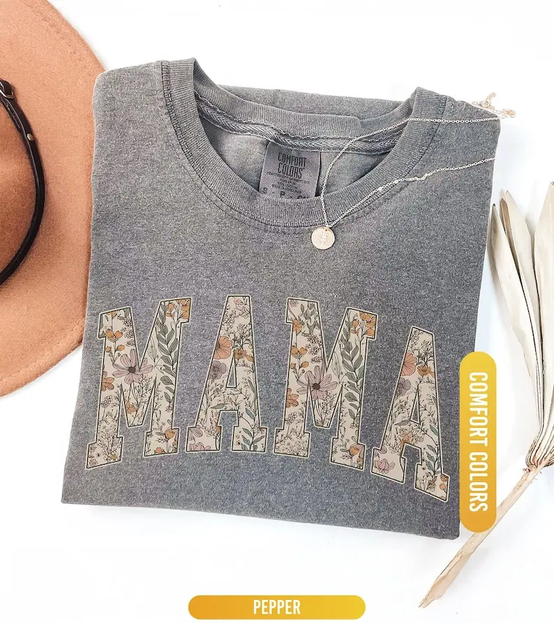 Comfort Colors Mama Shirt, Floral Mama Shirt, Mothers Day Gift, Shirt For Mom, Retro Mom Tee, Cute Mom Shirt, Mama Tshirt, Shirt for Women