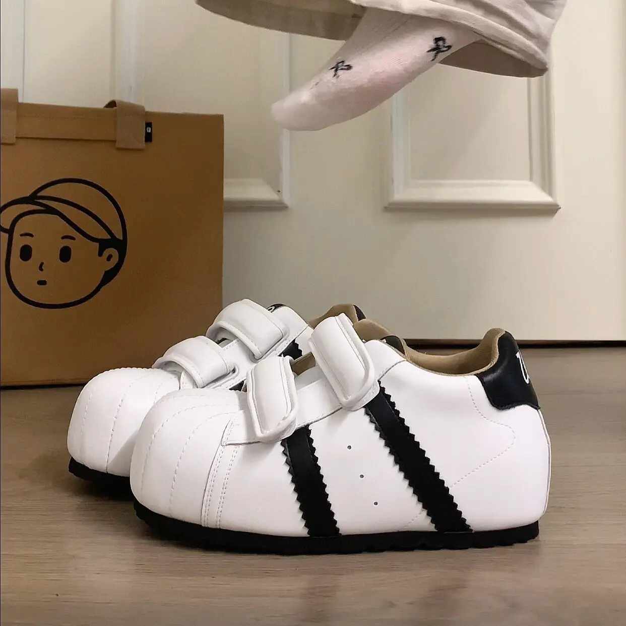 Women's shell-toe chunky shoes with 6CM internal height increase, Velcro closure, cute and quirky caterpillar bubble loafers