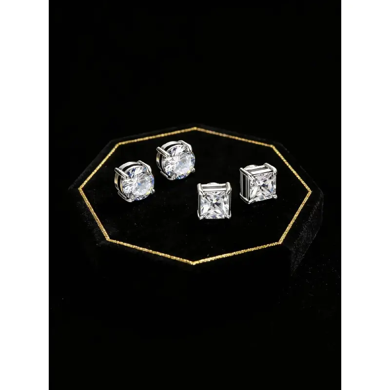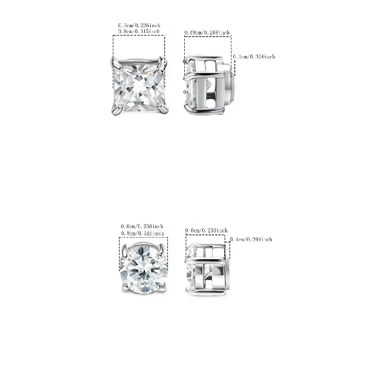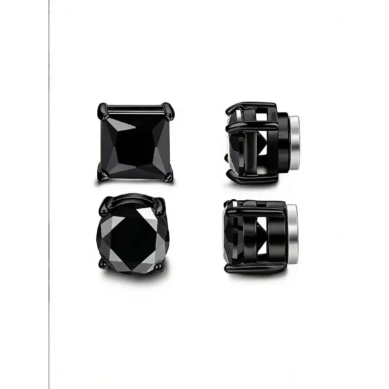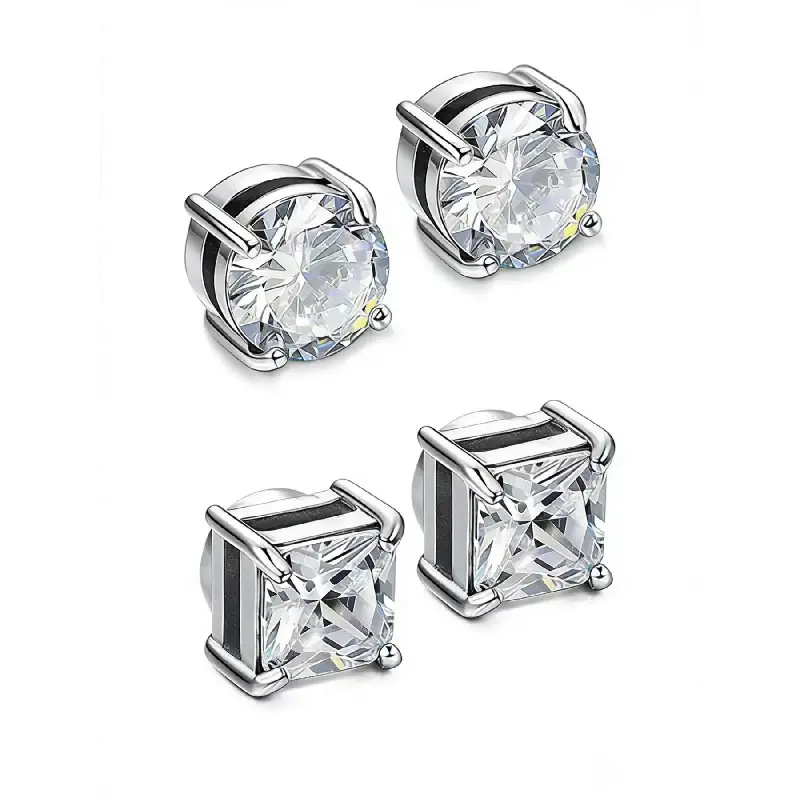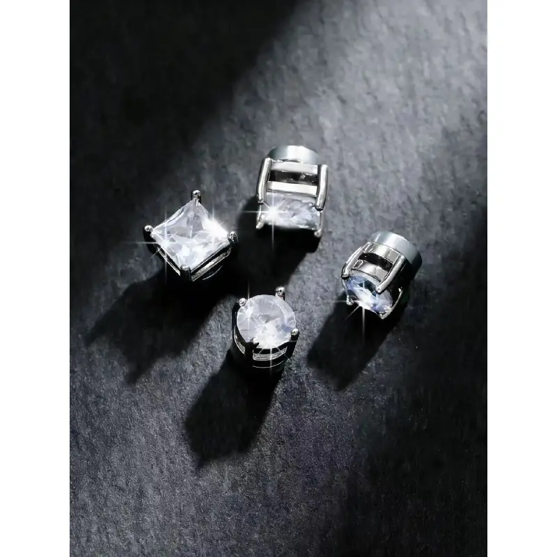 4pcs Simple Stainless Steel Cubic Zirconia Ear Clips, Sparkling Zirconia Magnetic Design Unisex Jewelry Set, Perfect Gift for All Seasons