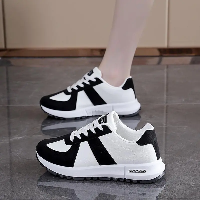 2026 Autumn New Women's Sports Shoes, Student Color-Block Hong Kong Style Round-Toe Dad Shoes, Casual German Training Shoes