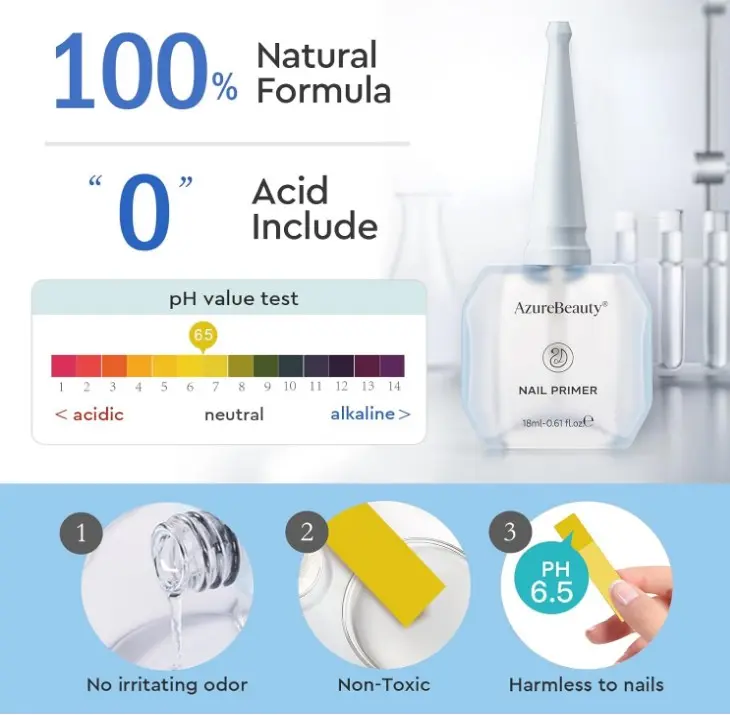 ·Hema-Free & Acid-Free Formula: AzureBeauty nail primer kit designed for natural nails uses a hema-free formula, which does not harm natural nails, without damaging them. Low odor, fast drying. Safe for regular use when applied properly, making it perfect for beginners and professional manicurists